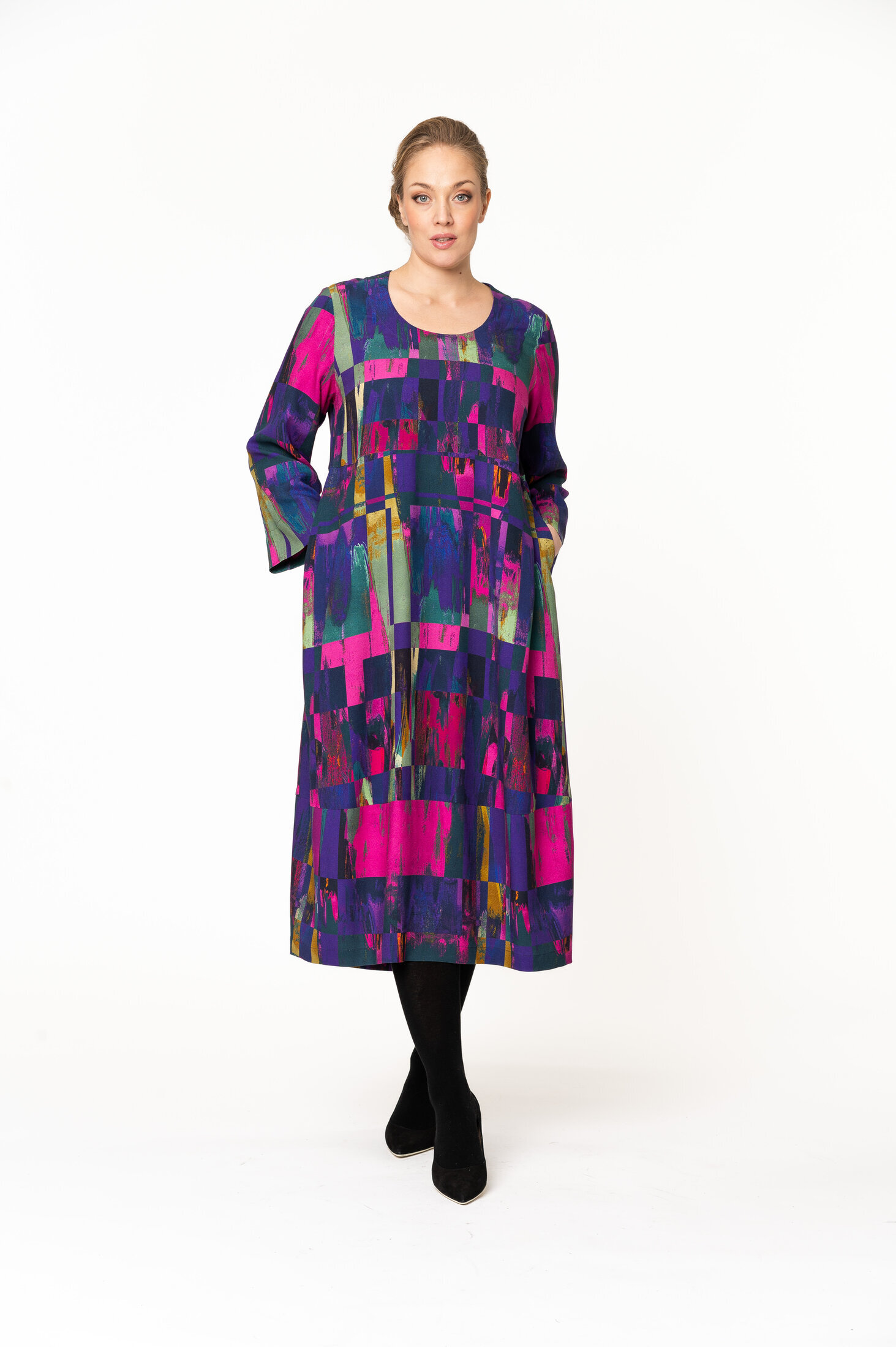 Pitkässä Malina -mekossa on istuva yläosa ja tulppaanimainen helma, jossa on kiinnostava poikkileikkaus. Mekossa on pitkät hihat ja sivutaskut. Mekossa on kaunis istuvuus ja se sopii hyvin juhlavampaankin tilaisuuteen.