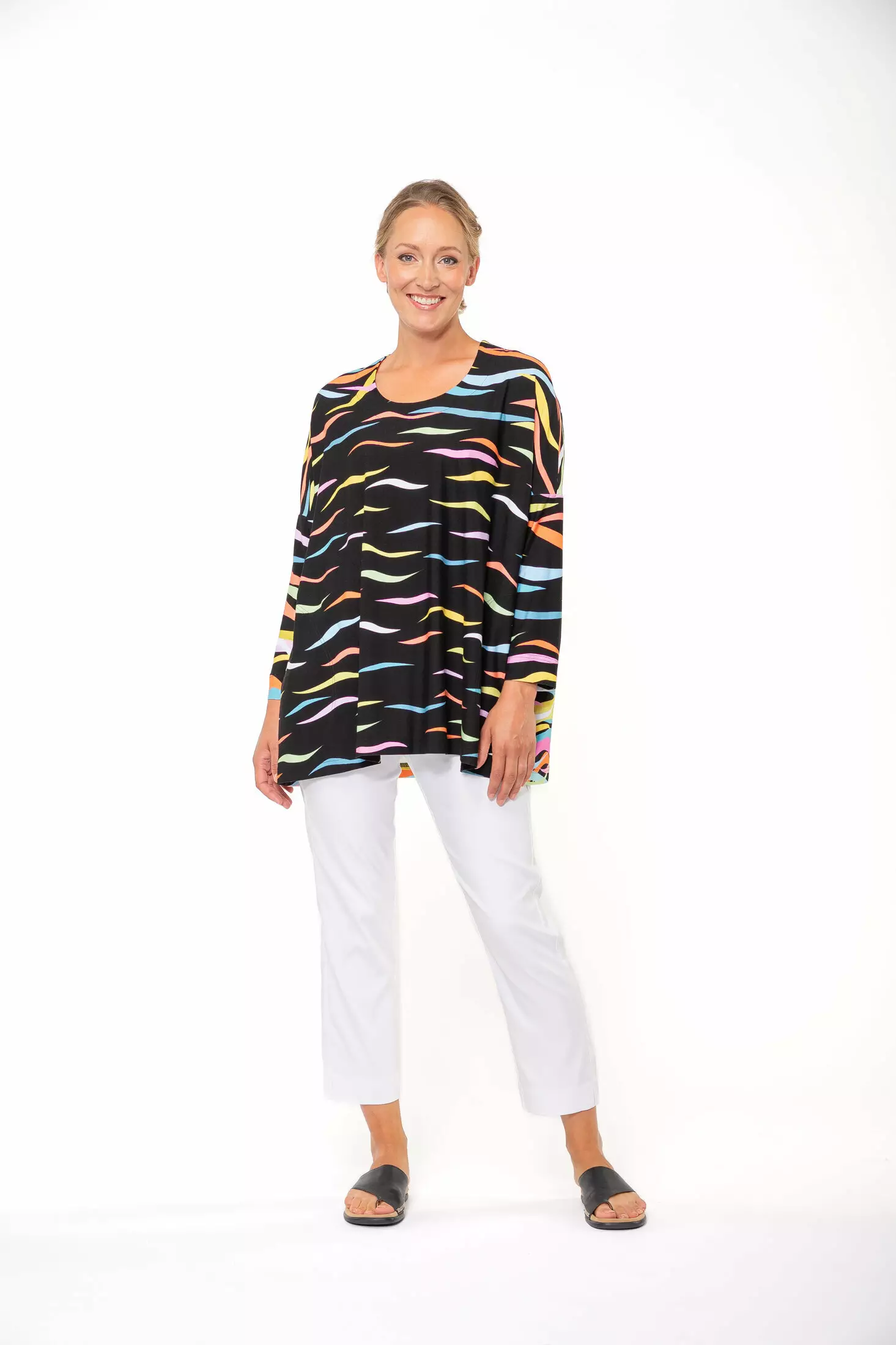 Aino Sara -tunika on monikäyttöinen ja mukava vaate, joka sopii moneen eri tilaisuuteen. Sen laskeutuva viskoositrikoo, pyöreä pääntie ja reilu mitoitus tekevät siitä sekä tyylikkään että mukavan.