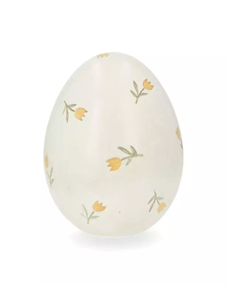 Tämä koristemuna on reilun kokoinen (korkeus 15 cm), mikä tekee siitä näyttävän elementin kodin asetelmiin. Polyresiinistä valmistettu pinta on viimeistelty kauniilla tulppaanikuvioinnilla, joka tuo perinteiseen muna-aiheeseen upeaa kerroksellisuutta ja hienostuneisuutta. Se on loistava tapa tuoda pääsiäistunnelmaa kotiin ilman liiallista värien käyttöä.