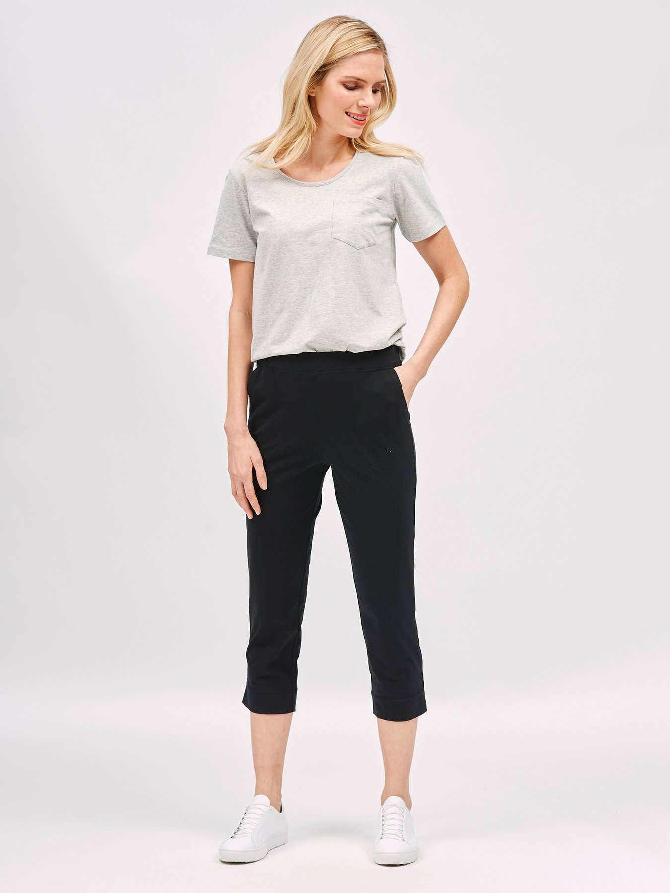 Naisten yksiväriset Basic-housut. Kevyissä housuisssa on sivuissa taskut ja lahkeensuussa halkiot sekä kuminauhavyötärö. Materiaali on laadukasta, iholla miellyttävän pehmeältä tuntuvaa ja helppohoitoista puuvilla-elastaania, joka pysyy hyvänä pesusta toiseen.