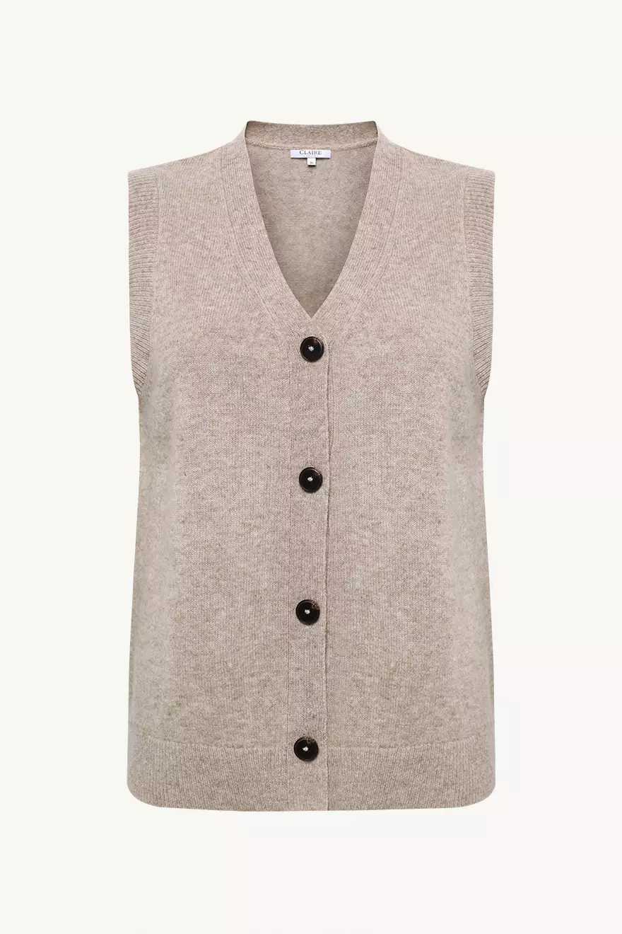 Tämä CLAIRE Ellie -neuleliivi on tyylikäs ja ajaton lisä vaatekaappiisi. 100 % villasta valmistettu liivi tuntuu pehmeältä ja luonnolliselta ihoa vasten. Liivissä on klassinen V-pääntie, napitus edessä ja huolitellut resorit, jotka luovat siistin ilmeen. Hihaton malli sopii täydellisesti kerrospukeutumiseen, tuoden asuun lämpöä ja modernia tyyliä.