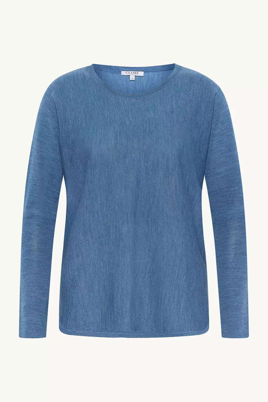 Tuo vaatekaappiisi ajaton perusvaate tällä CLAIRE Pippa Merinovillaneuleella! Tämä kaunis neule on valmistettu 100 % ohuesta merinovillasta, joka antaa ihanan pehmeän ja ylellisen tunteen. Neule sopii käytettäväksi vuoden ympäri. Siinä on pyöreä pääntie, laskeutuvat olkapäät ja leveät resorit hihoissa sekä helmassa. Alahelma on naisellisesti pyöristetty ja takaa hieman pidempi. Niskassa oleva pieni kultainen tunnus lisää neuleeseen hienostuneen yksityiskohdan. Sen elegantti sininen "wild wind melange" -väri tekee siitä monipuolisen ja helposti yhdisteltävän.