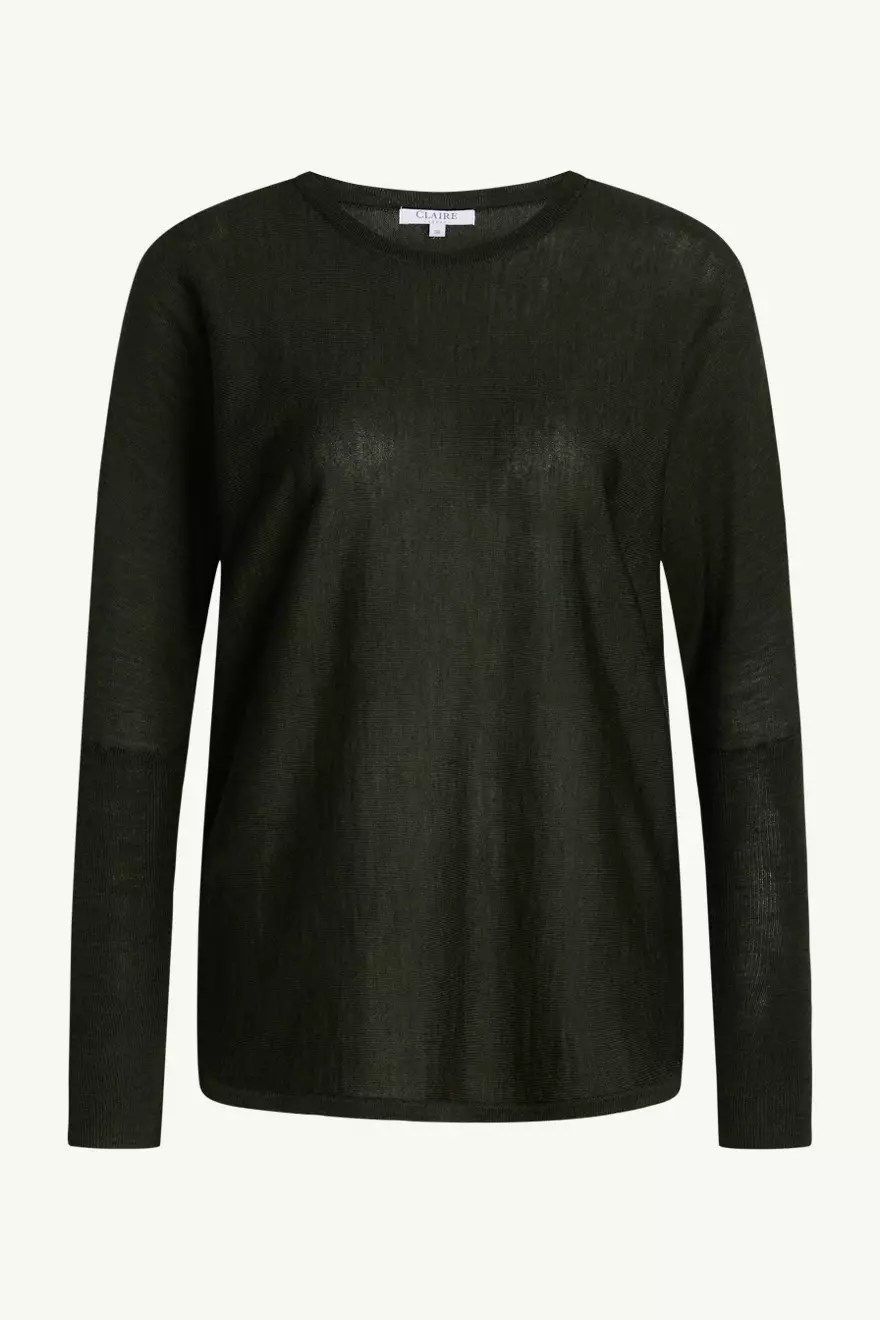 Tuo vaatekaappiisi ajaton perusvaate tällä CLAIRE Pippa Merinovillaneuleella! Tämä kaunis neule on valmistettu 100 % ohuesta merinovillasta, joka antaa ihanan pehmeän ja ylellisen tunteen. Neule sopii käytettäväksi vuoden ympäri. Siinä on pyöreä pääntie, laskeutuvat olkapäät ja leveät resorit hihoissa sekä helmassa. Alahelma on naisellisesti pyöristetty ja takaa hieman pidempi. Niskassa oleva pieni kultainen tunnus lisää neuleeseen hienostuneen yksityiskohdan. Sen elegantti tummanvihreä "old forest melange" -väri tekee siitä monipuolisen ja helposti yhdisteltävän.