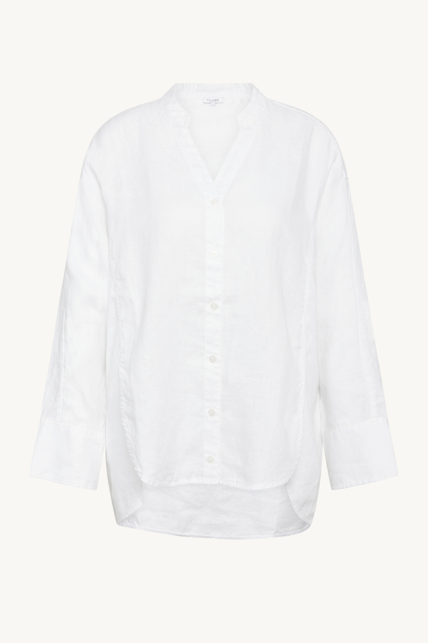 Clairen kudottu pellavapaita, jossa on pienet pystykaulukset, V-pääntie ja nappikiinnitys edessä. Vaatteessa on sivuilla halkiot, ja siinä on kaareva helma, joka on pidempi takana sekä 3/4-pituiset hihat.
