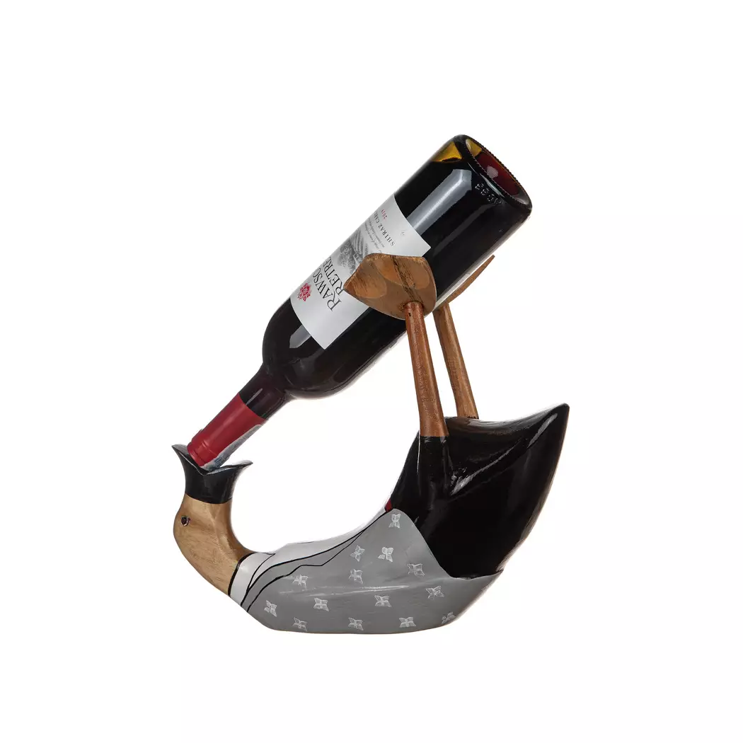 Tämä ankan muotoinen viiniteline on erinomainen tapa säilyttää viinipullosi luovalla tavalla. Se sopii täydellisesti keittiöön, olohuoneeseen tai hauskaksi yksityiskohdaksi viinikellariin. Se on myös ihanteellinen lahja henkilölle, joka arvostaa sekä viiniä että ainutlaatuista muotoilua.