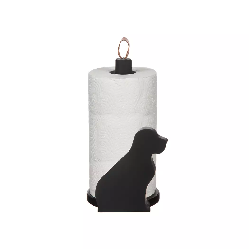 Tämä musta, puinen talouspaperiteline koira-aiheella tuo keittiöösi leikkisyyttä ja persoonallisuutta. Sen avulla pidät talouspaperirullan helposti saatavilla ja siististi järjestyksessä.