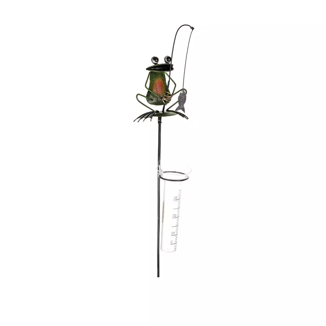 - Muotoilu: Hauska sammakko-aiheinen koriste, jossa on mittalasi sateen määrän mittaamiseen.