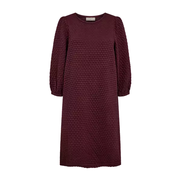 Tämä Freequent-merkkinen Bubble-jerseymekko on täydellinen valinta arkeen ja töihin. Mekko on valmistettu miellyttävästä, kevyestä ja ohuesta jerseymateriaalista, ja siinä on tyylikäs, pieni kohokuvio. Mekossa on kevyt A-linjainen siluetti, pyöreä pääntie, 3/4-hihat, joissa on väljät kuminauhat, sekä kätevät sivusaumataskut. Normaali mitoitus takaa hyvän istuvuuden.