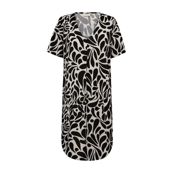 Nauti kesän rennoimmista hetkistä FREE/QUENT Floi -mekossa. Tämä mekko on suunniteltu sinulle, joka arvostat vaivatonta tyyliä ja materiaalia, joka tuntuu unelman pehmeältä iholla. Hiekanvaalean ja mustan (Moonbeam w. Black) hienostunut kuosi luo ajattoman ilmeen, joka sopii niin kaupungin kaduille kuin kesäisiin puutarhajuhliinkin.