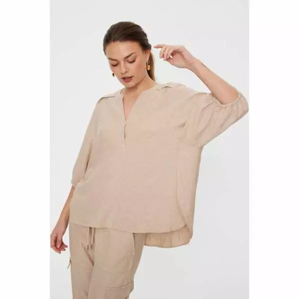 FREE/QUENT Fqlava on täydellinen valinta sinulle, joka etsit kevyttä ja hienostunutta yläosaa lämpimiin päiviin. Tämä kaunis hiekanvaalean sävyinen (Sand Melange) pusero yhdistää pellavan luonnollisen tekstuurin ja viskoosin pehmeän laskeutuvuuden. Se on monikäyttöinen vaatekaapin kulmakivi, joka tuo ripauksen rentoa luksusta niin arkeen kuin juhlavampiinkin hetkiin.