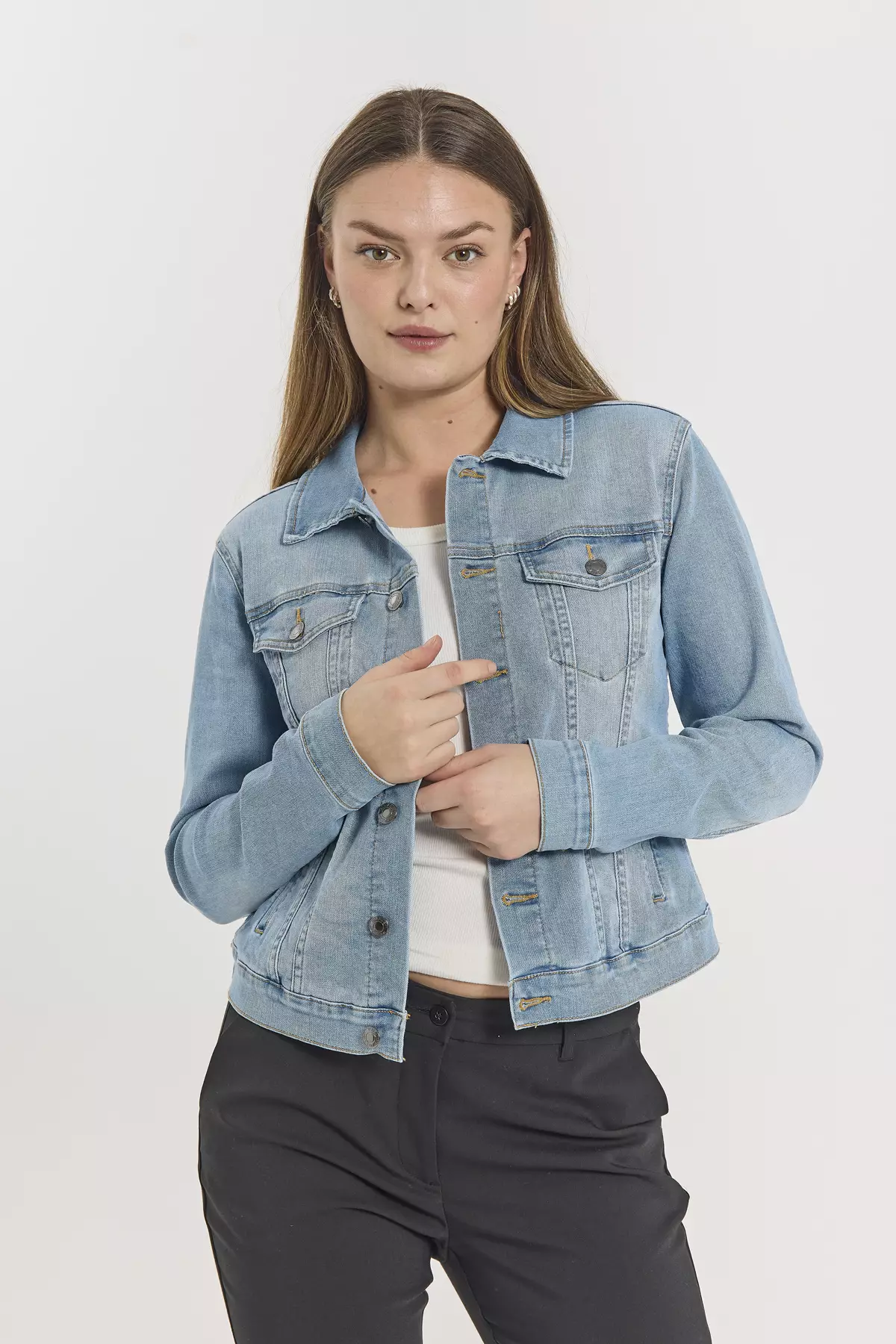 Päivitä vaatekaappisi todellisella luottovaatteella: FREE/QUENT FQROCK -farkkutakilla. Tämä vaaleansininen klassikko yhdistää perinteisen denim-estetiikan ja modernin mukavuuden. Takin joustava materiaali takaa, että se istuu kauniisti mutta antaa tilaa liikkua – täydellinen valinta aktiiviseen arkeen ja rennoille kesäretkille. Vaaleansininen pesu on raikas ja helppo yhdistää niin pastellisävyihin kuin tummempiinkin alaosiin.
