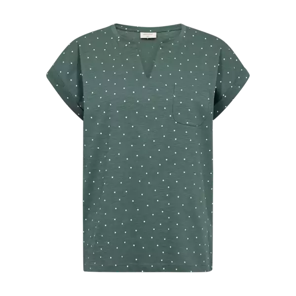 FREE/QUENT Viva on hurmaava ja ajaton t-paita, joka tuo leikkisää tyylikkyyttä arkipukeutumiseen. Tässä versiossa yhdistyvät syvän metsänvihreä pohjaväri (Dark Forest) ja raikkaat valkoiset pisteet (Star Off-White). Valmistettu korkealaatuisesta puuvillasekoitteesta, joka sisältää 50 % luomupuuvillaa, tämä paita on vastuullinen ja unelmanpehmeä valinta jokapäiväiseen käyttöön.