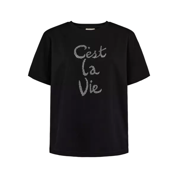 Tämä Freequent-merkkinen Malak-T-paita on valmistettu ihanan pehmeästä materiaalista ja siinä on tyylikäs, yksinkertainen siluetti. Paidassa on rento istuvuus, pyöreä pääntie resorilla, lyhyet hihat ja etupuolella näyttäviä strasseja, jotka tuovat paitaan ainutlaatuista hohtoa.