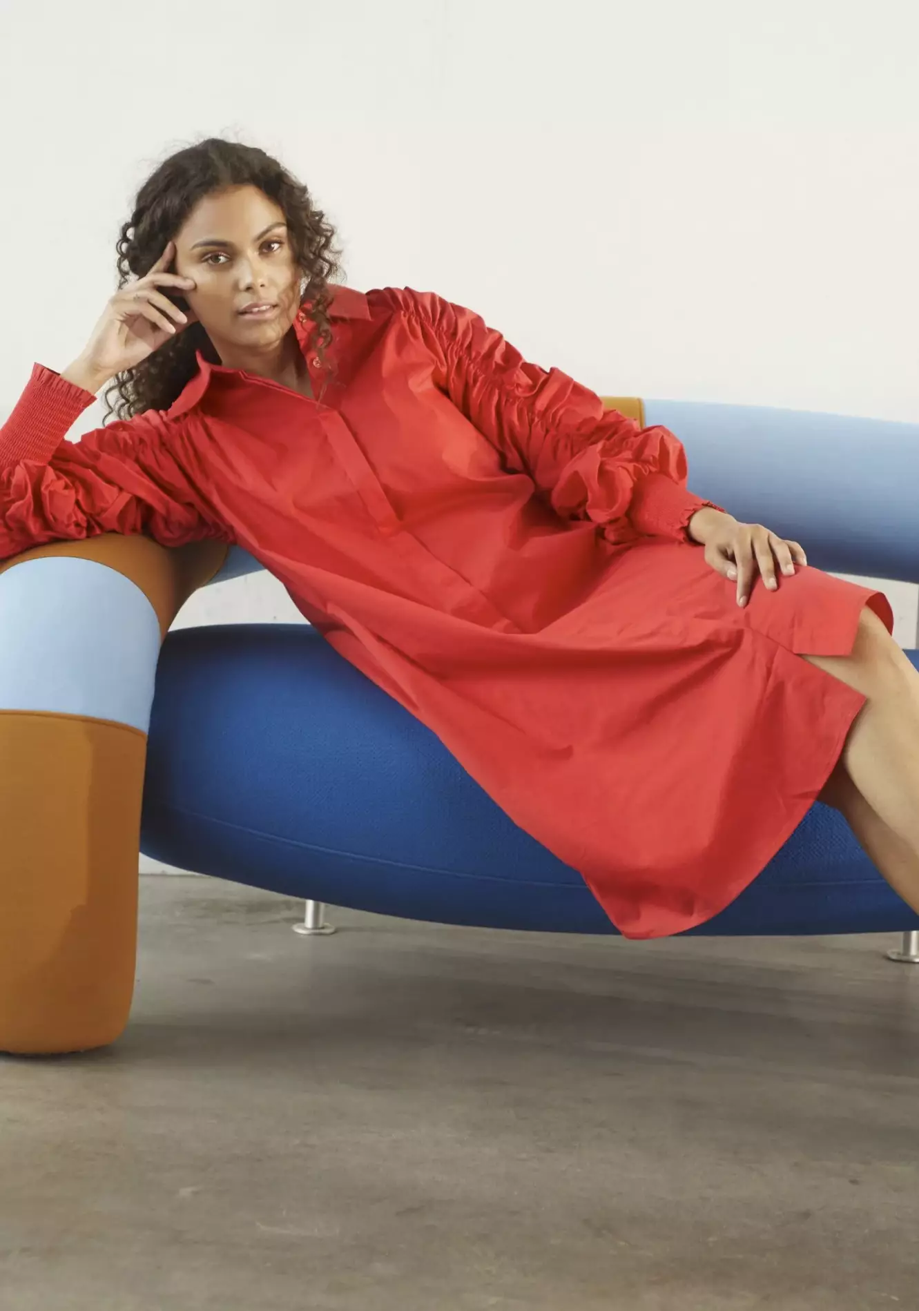 I SAY Sigga Deco on vaatekaappisi uusi väriläiskä, joka yhdistää klassisen paitamekon linjat ja luovan, modernin muotoilun. Tämän mekon sähäkkä Fresh Red -sävy kääntää katseet, mutta todellinen vau-efekti löytyy hihoista: upeat rypytetyt yksityiskohdat tuovat asuun eksklusiivista ja persoonallista ilmettä. Sigga Deco on täydellinen valinta sinulle, joka haluat mukavuutta tyylistä tinkimättä.