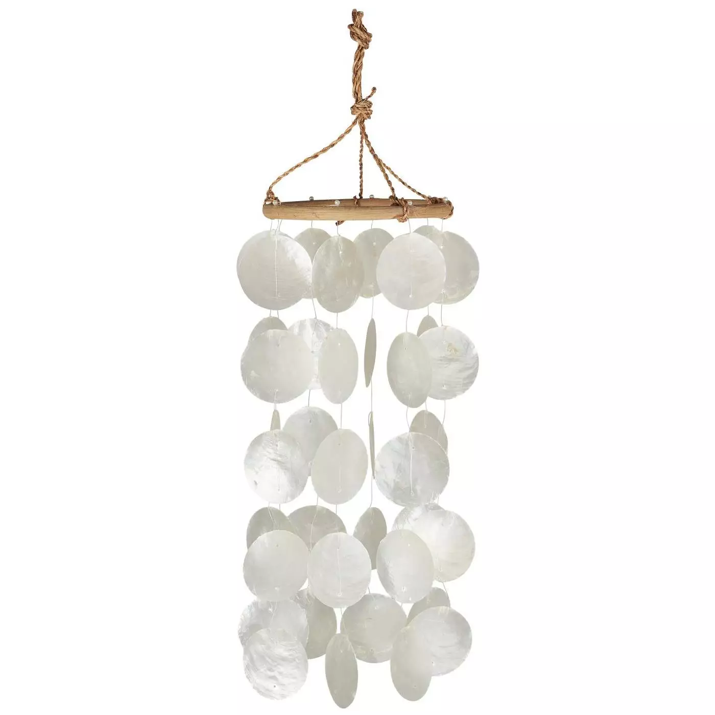 Tuo kotiisi rannan rauhoittavaa tunnelmaa tällä kauniilla Ib Laursen Rantakotilo Tuulikellolla. Tämä tuulikello on valmistettu luonnon rantakotiloista ja rottinkirenkaasta, luoden uniikin ja luonnonläheisen sisustuselementin.