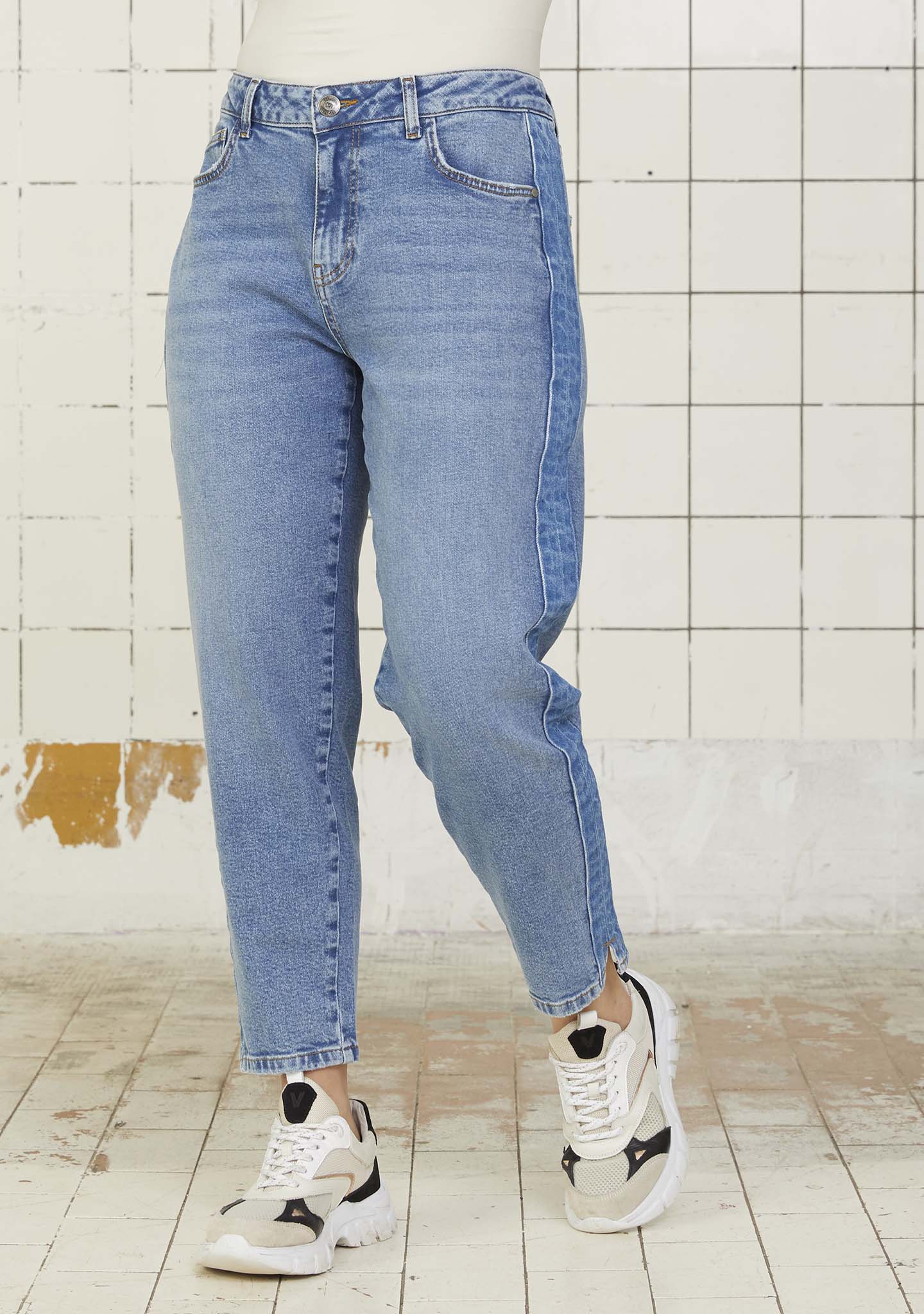 Hienot farkut trendikkäällä denim pesulla. Näissä farkuissa on lahkeissa pienet halkiot, korkea vyötärö ja mukava istuvuus.