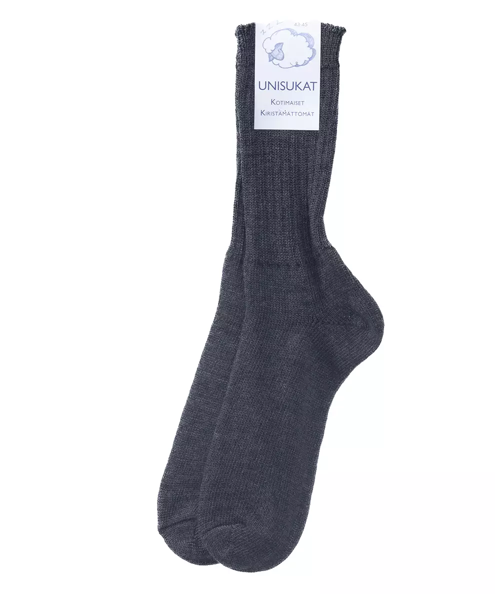 Kun jalat kaipaavat lämpöä ja mukavuutta, nämä ohuet ja pehmeät merinovillasukat ovat täydellinen valinta. Valmistettu laadukkaasta suomalaisesta merinovillasta, joka hellii herkkää ihoa kutittamatta ja lämmittää miellyttävästi. Kiristämätön varsi tuo lisämukavuutta erityisesti yökäyttöön, antaen jaloille vapauden rentoutua.