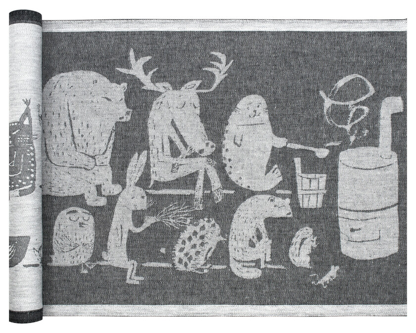 Eläinten Sauna pellava-puuvilla laudeliina on palkitun Matti Pikkujämsän suunnittelema! Lapuan Kankureiden tuotteet ovat laadukkaasti viimeisteltyjä ja helppohoitoista pellava-puuvillasekoitetta, jossa pellavan kiilto tulee upeasti esille. Huomaathan, että laudeliina sopii hyvin käytettäväksi myös hauskana kaitaliinana tai vaikka seinävaatteena!