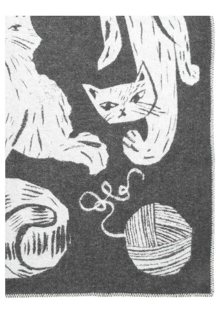 Tummanharmaan ja valkoisen sävyinen huopa tuo kotiisi Matti Pikkujämsän omintakeista tyyliä, joka ammentaa suomalaisesta arjesta ja on viimeistelty lämpimällä huumorilla. Se on täydellinen lahja kissoja rakastaville!