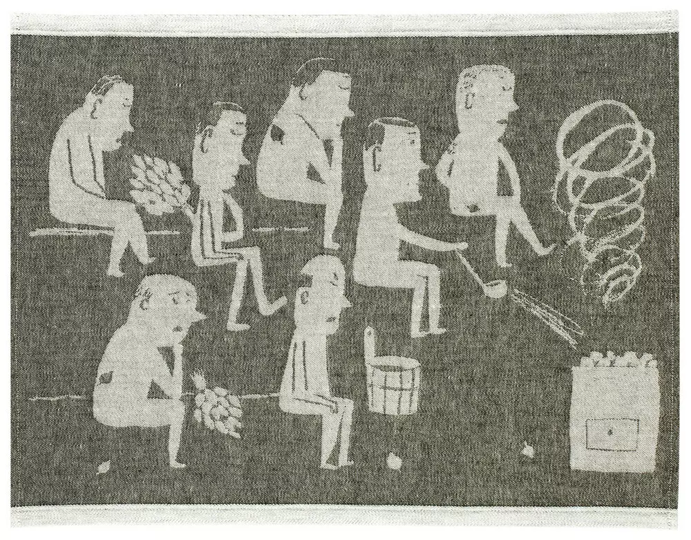 Matti Pikkujämsän hilpeät saunakuosit ovat koko perheen kestosuosikkeja! Lapsille ja lastenmielisille saunakaveriksi sopii mainiosti ELÄINTEN SAUNA -laudeliina ja saunatyyny. Naisille ja miehille löytyy mallistostamme omat saunatuotteensa: NAISTEN SAUNA ja MIESTEN SAUNA.