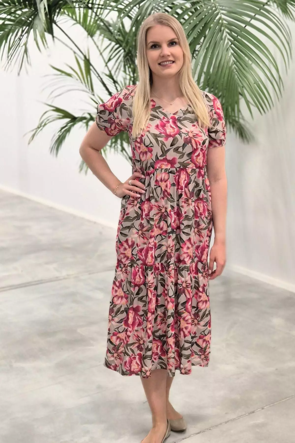 LASESSOR SAMSA Kukkakuosillinen Lyocell Mekko – Hehkuvaa fuksiaa ja silkkistä pehmeyttä