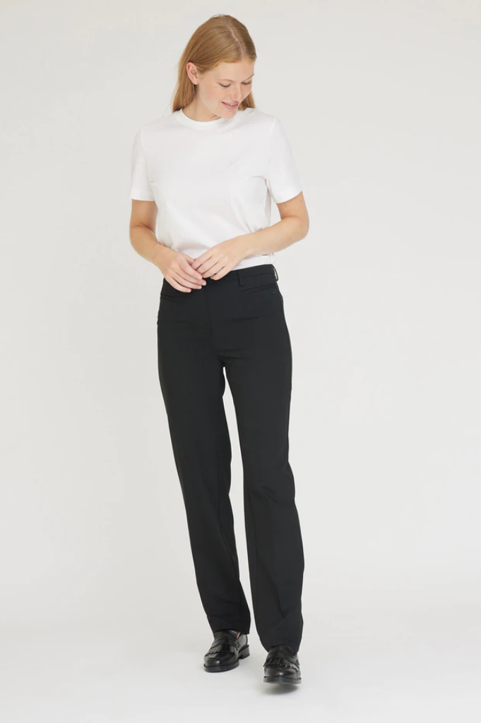 Klassiset housut modernille naiselle. Housuissa on vyölenkit sekä halkiotaskut edessä. Lisäksi niissä on prässätyt laskokset, tehden niistä täydellisen valinnan piristämään asujasi ja antamaan tyyliä niin arki- kuin juhlapukeutumiseen. Voit stailata ne esimerkiksi ohuen neuleen ja matalien kenkien kanssa, tai yhdistää korkokenkiin pukeutuessasi juhliin. LauRie vaatteen on valmistettu ilman terveydelle haitallisia kemikaaleja. Classic siluetti.