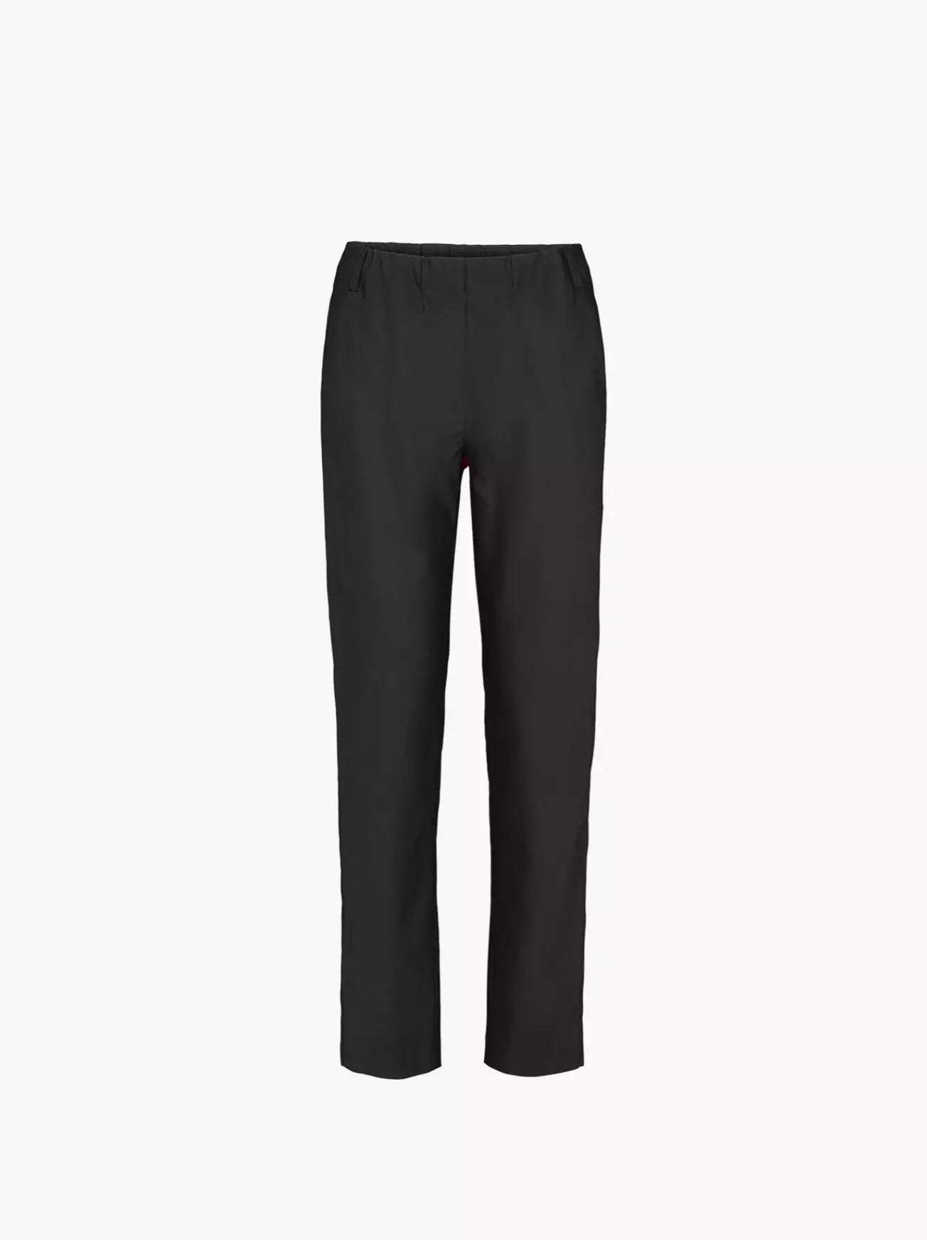 Design: Pelkistetyn tyylikäs Regular-housumalli. Joustava vyötärönauha, viistot etutaskut ja vyölenkit. Keskipituinen lahje.
