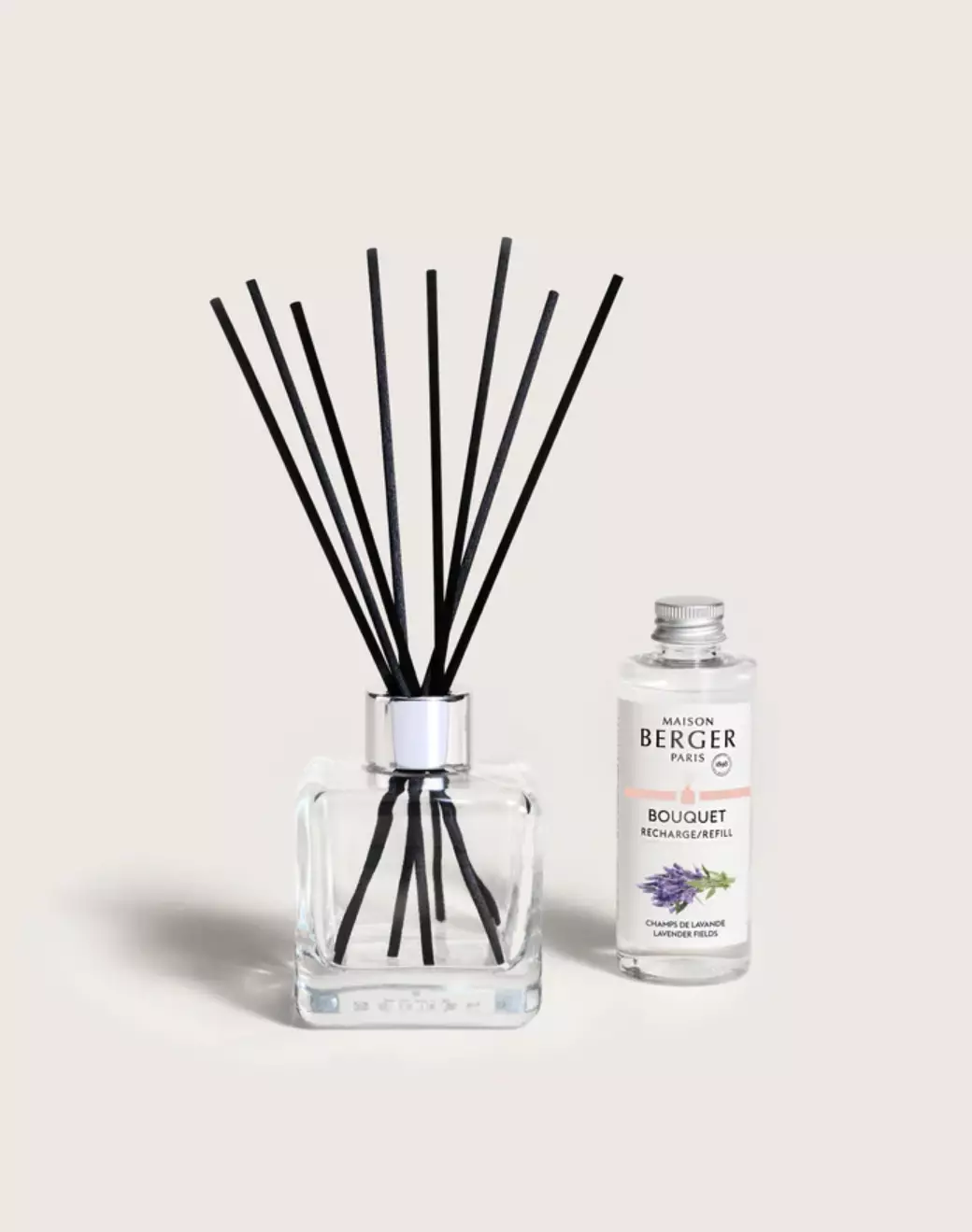 Tuo sisustukseesi Provencen tuulahdus tällä eloisalla ja hienovaraisella MAISON BERGER PARIS Lavender Fields Huonetuoksulla. Tämä kuution muotoinen lasipullo hopeanvärisellä renkaalla ja mustilla polymeeritikuilla levittää kapillaaritoiminnalla tuoksua useiden viikkojen ajan. Tuoksu on kunnianosoitus auringon lämmittämille sinisille laventelipelloille, avautuen raikkaalla eukalyptuksen ja päärynän vivahteella. Pakkaus sisältää 100 ml täyttönesteen.