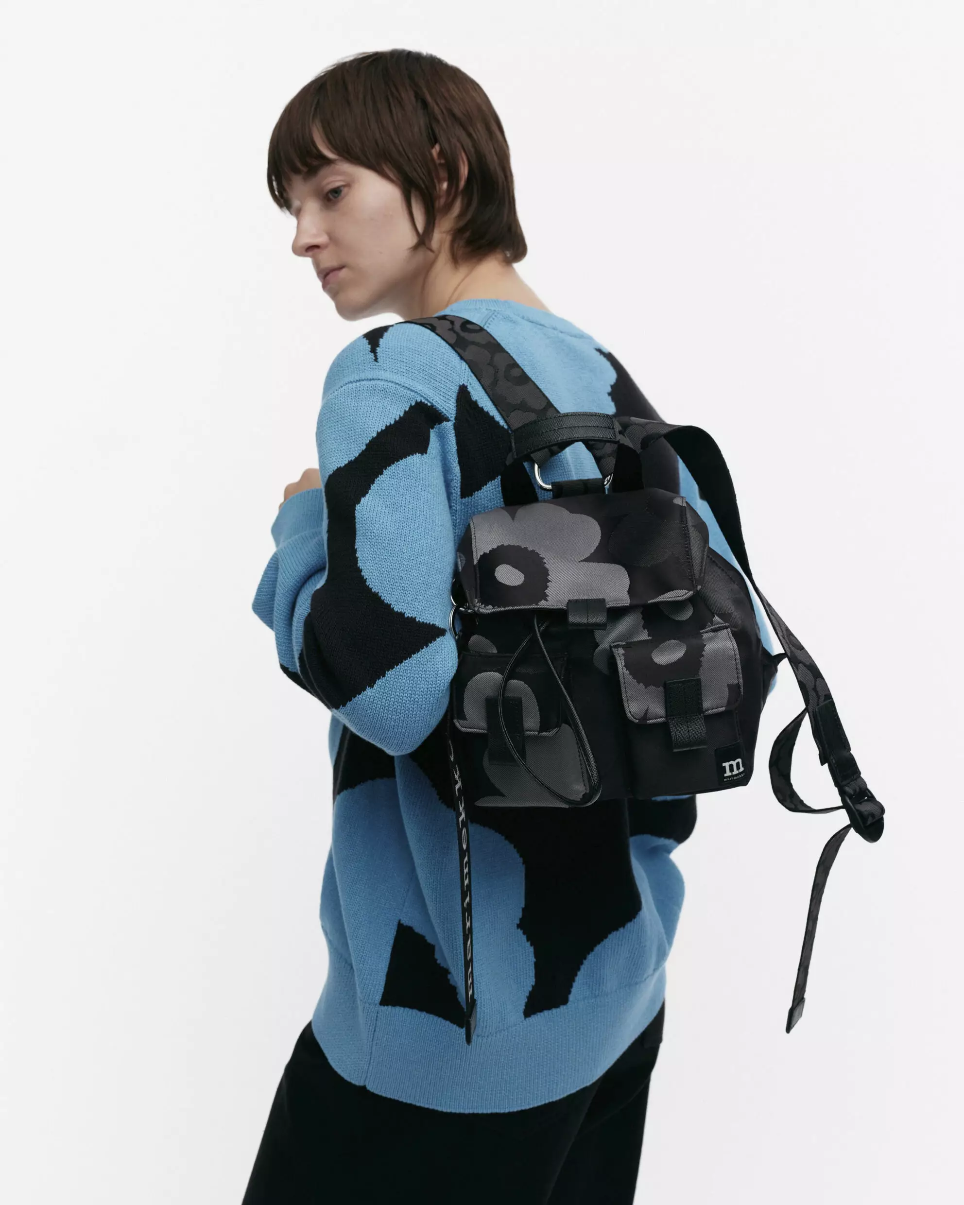 #marimekko #everythingbackpack #unikko #reppu #minireppu #kierrätettypolyesteri #kierrätettynahka #jacquard #vastuullinen #ekologinen #harmaa #musta #suomalainendesign #maijaisola #kiina #kompakti #monikäyttöinen #lahjaidea #pienireppu