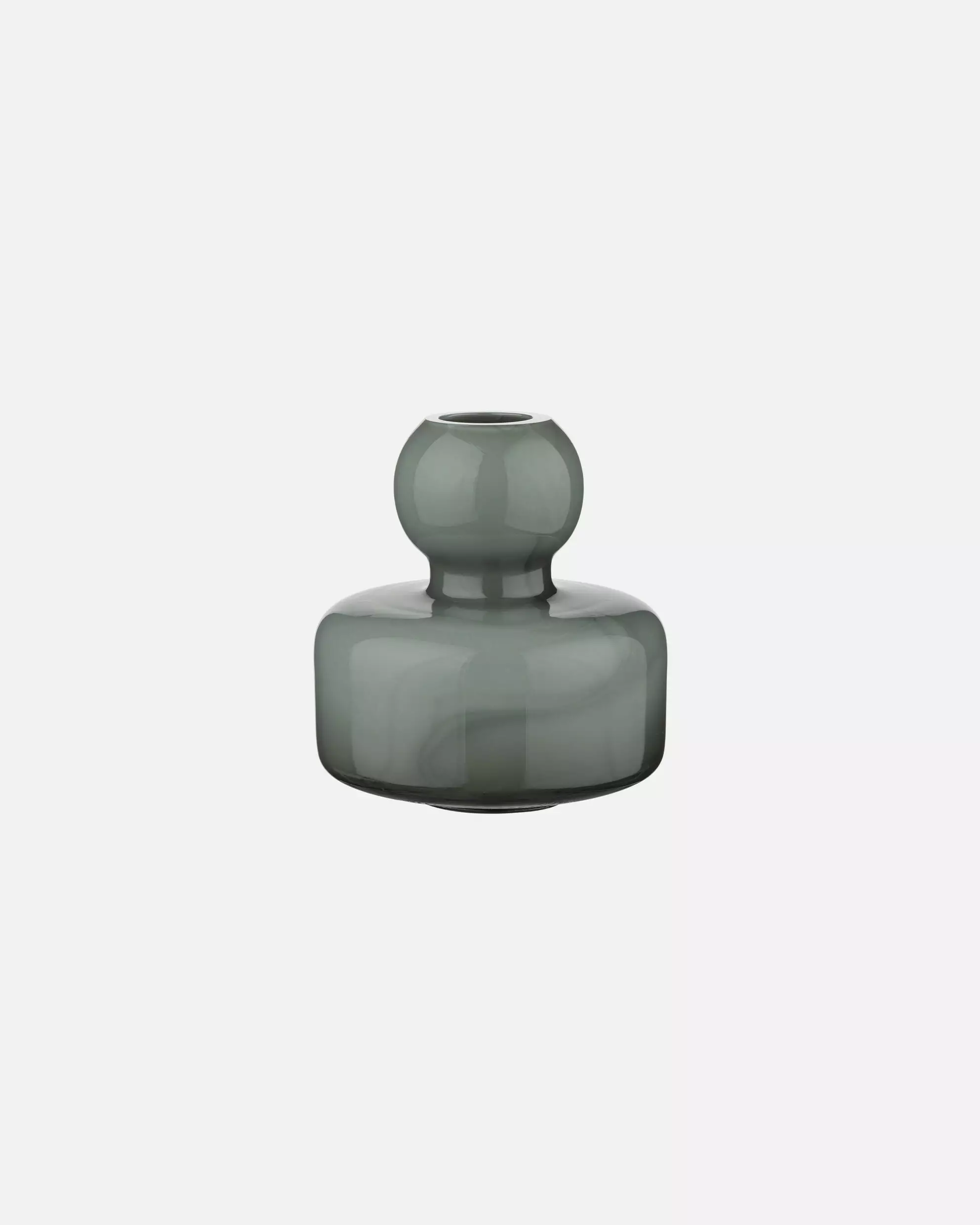 Tuote: Marimekko Flower Maljakko Avainsanat: Marimekko Flower maljakko, Carina Seth Andersson, suupuhallettu lasi, hiilenharmaa maljakko, pieni maljakko, lasiesineet.