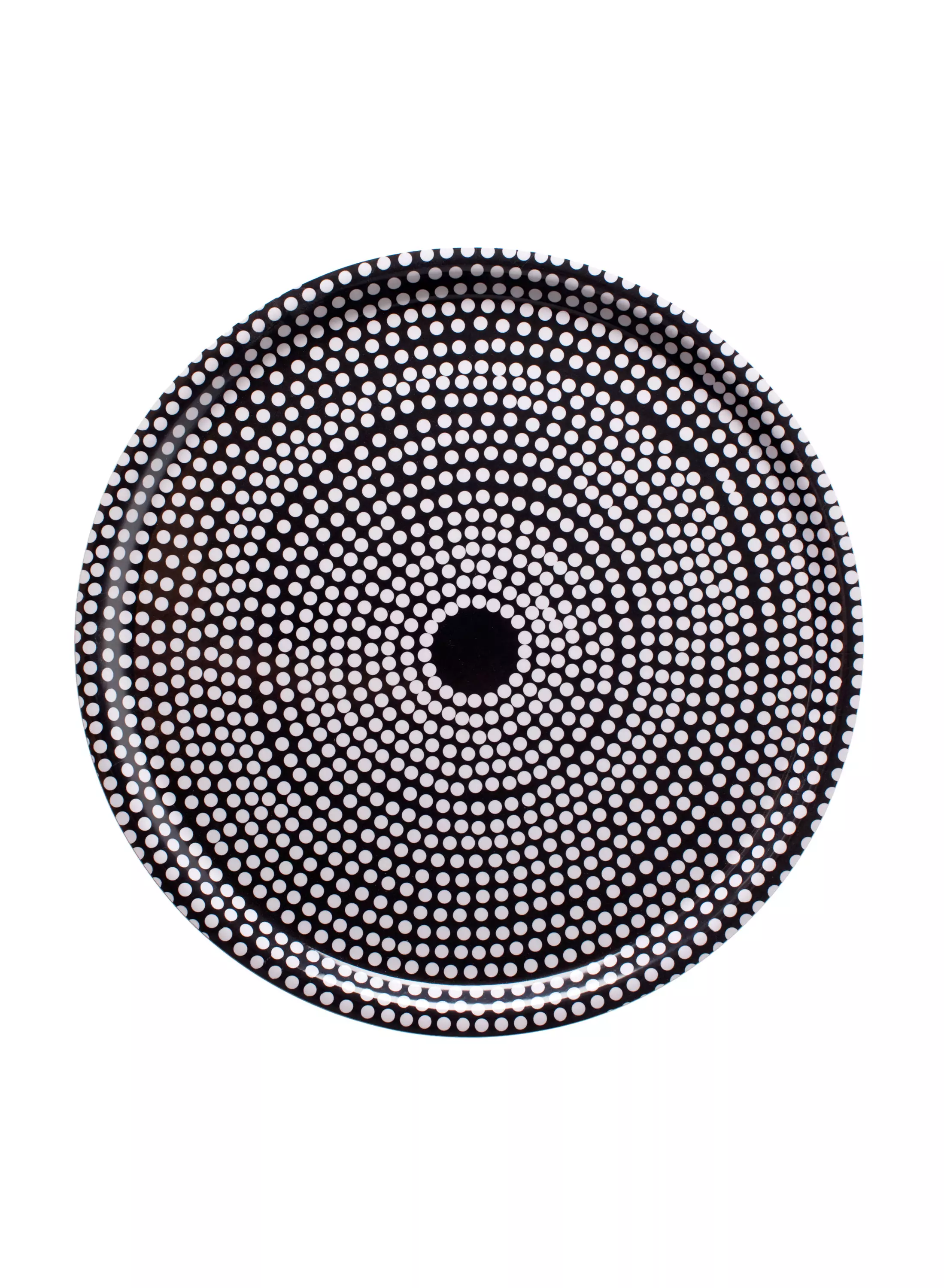 Kaunis, suosittu ja monikäyttöinen Marimekko Fokus tarjotin itselle tai lahjaksi. Sopii klassisen kuosin ja värien ansiosta sisustukseen kuin sisustukseen. Tältä tajottimelta on tyylikäs tarjoilla vieraille vaikka alkumaljat tai laittaa kauniisti tarjoiltavat juhlapöytään. Laminoitua kevyttä koivuvaneritarjotinta koristaa mustavalkoinen Fokus kuosi. Suuri tarjotin on halkaisijaltaan 46 cm.