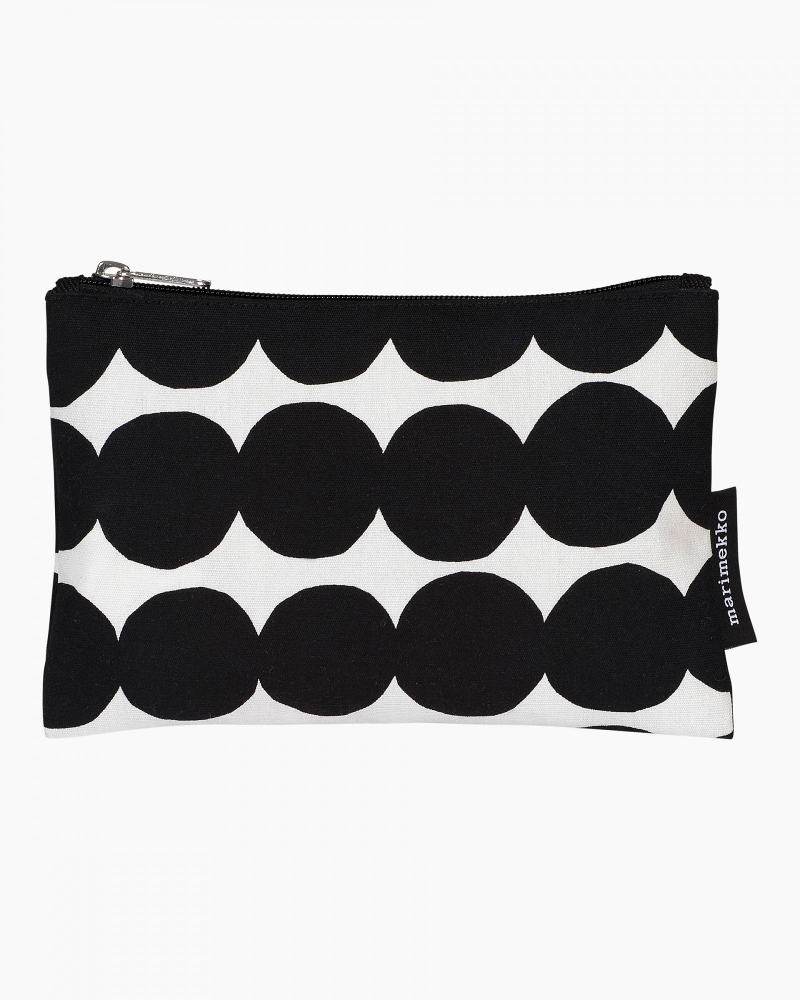 Pieni ja näppärän kokoinen kosmetiikkalaukku. Tähän saat hyvin sopimaan lyhyemmänreissun tarvikkeet, pienemmät meikkausvälineet tai sopii vaikka penaaliksi. Paksusta puuvillasta valmistetussa Kaika kosmetiikkalaukussa on mustavalkoinen Räsymatto kuosi. Helsingissä painetun kankaan pinnalla on lianhylkivyyskäsittely. Laukku sulkeutuu vetoketjulla ja sen sisällä on nailonvuori.