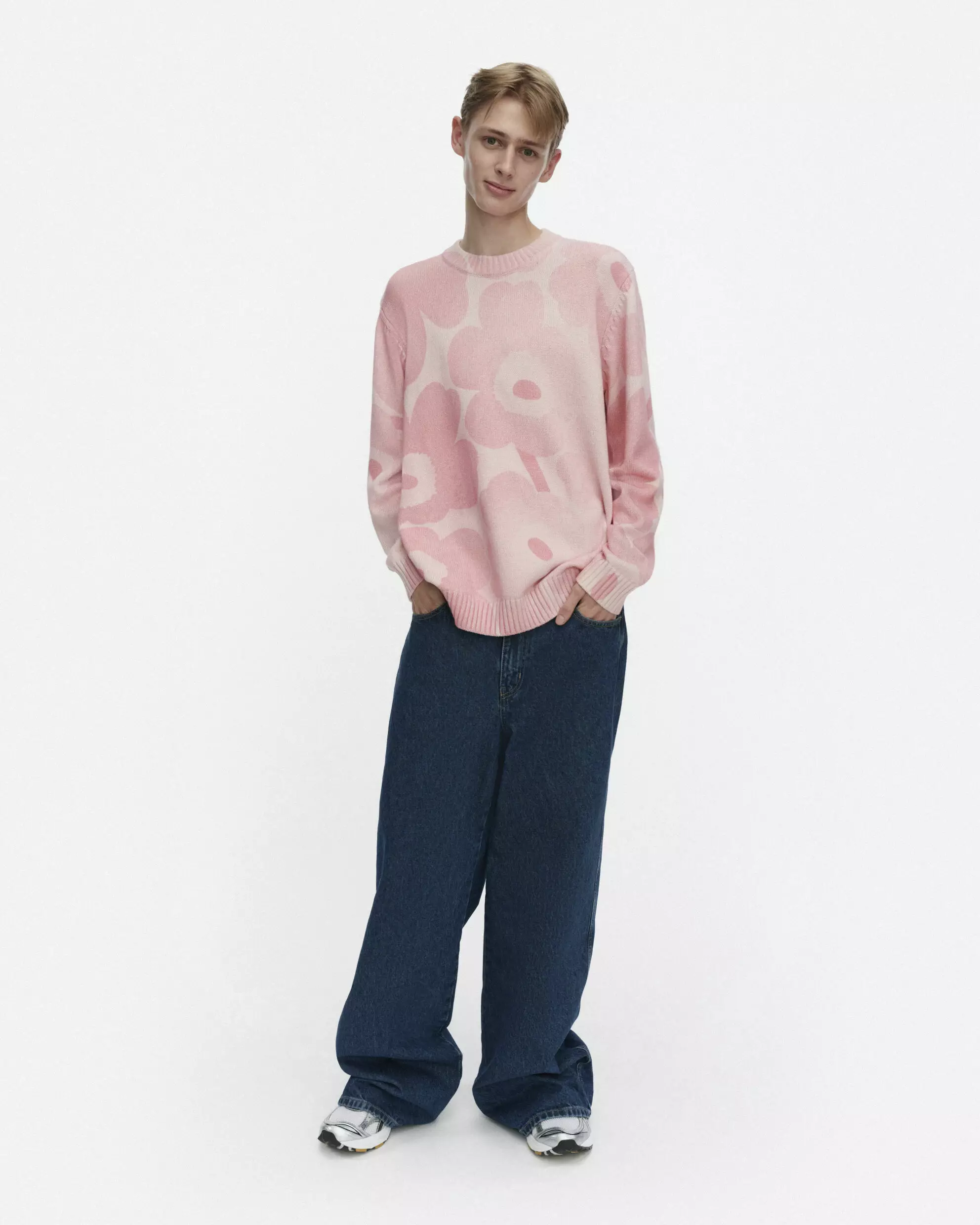 Ajaton muotoilu: Legendaarinen Unikko-kuosi ja rento istuvuus tekevät neuleesta kestävän ja monipuolisen vaatekappaleen.