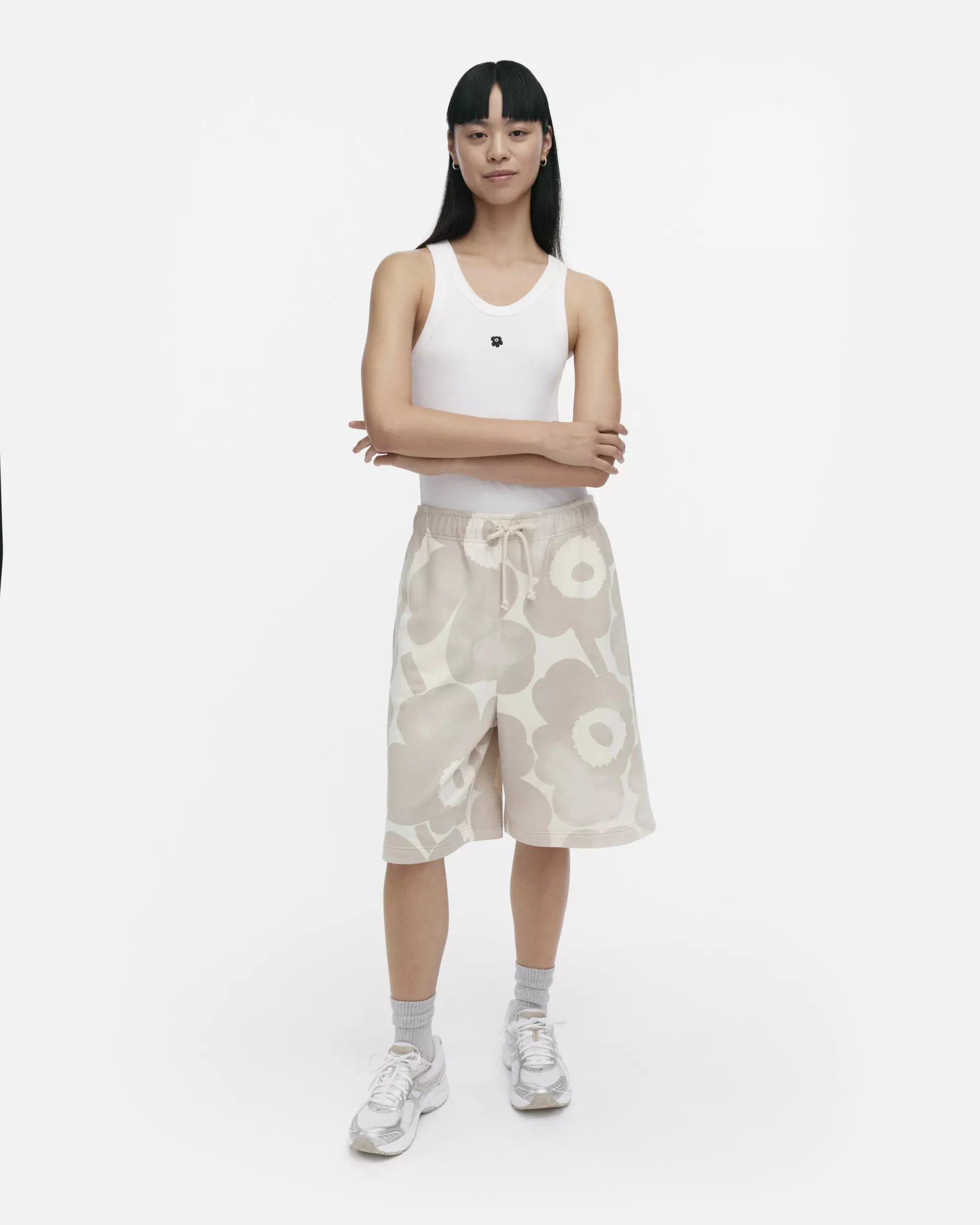 #marimekko #kioski #sarana #akvarelliunikko #shortsit #collegehousut #luomupuuvilla #rentoistuvuus #leveälahje #unisex #vesivärimäinen #luonnonvalkoinen #beige #suomalainendesign #maijaisola #portugali #vastuullinen #ekologinen #mukavat #tyylikkäät #arkishortsit #vapaaajanshortsit #uniikki