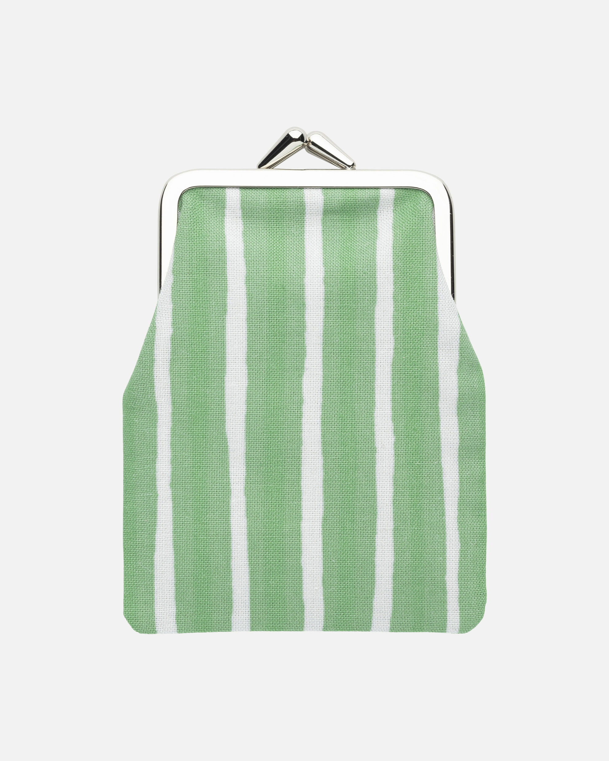 Korttikukkaro on käytännöllinen pienen tavaran säilytykseen, kolikoille, napeille tai mille vaan. Lompakkona rahat ja maksukortit kulkee kätevästi mukana. Kukkarossa on metallinen kehys, joka on helppo napsauttaa auki ja kiinni. Kukkaro on valmistettu Piccolo kuosisesta puuvillasta, joka on painettu Helsingissä.