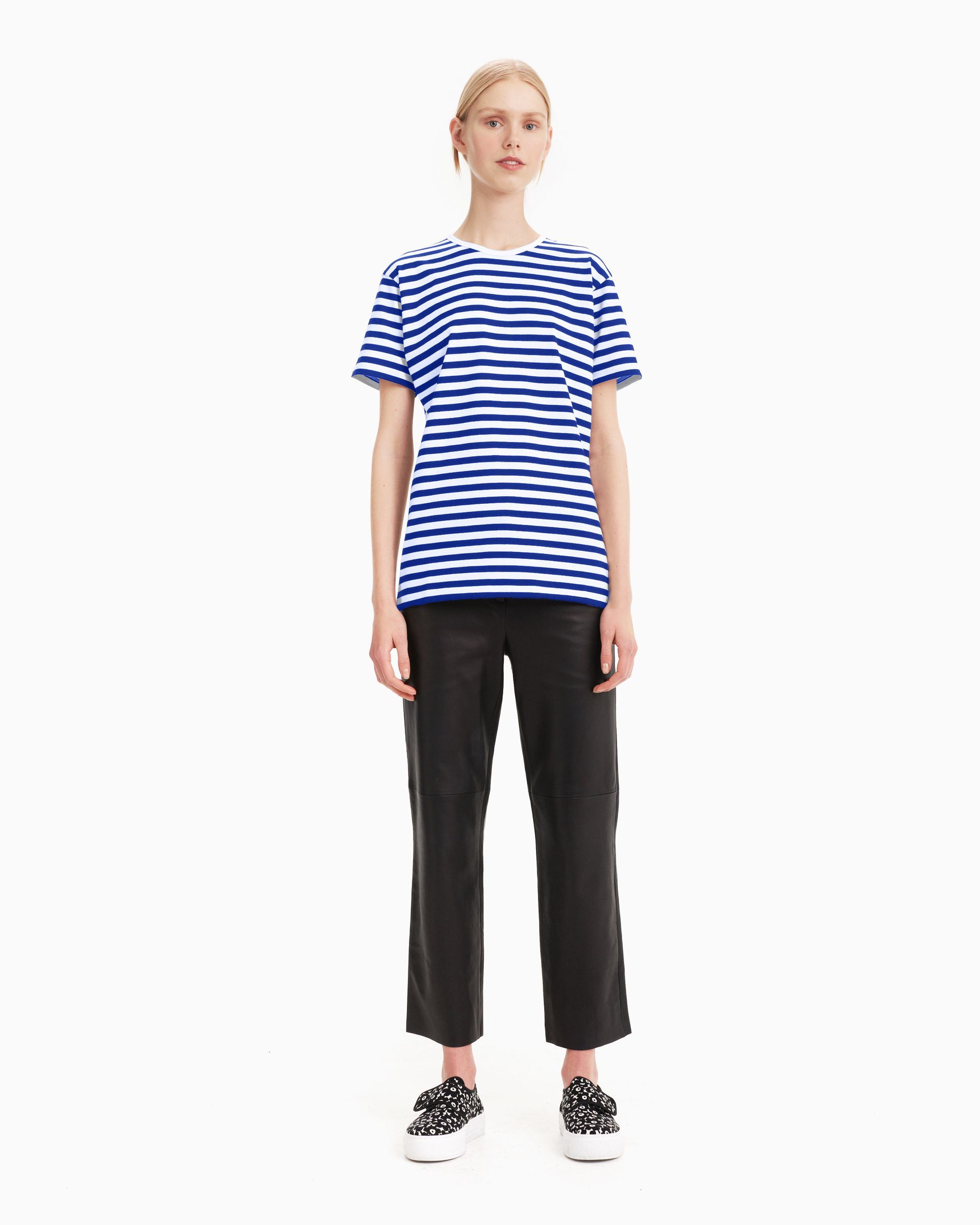 Tässä mukavassa, täyspitkässä puuvillaisessa yömekossa tahtoo oleskella unien jälkeenkin. Mekossa on klassinen mustavalkoinen Tasaraita-kuosi, pyöreä resorikantilla huoliteltu pääntie...