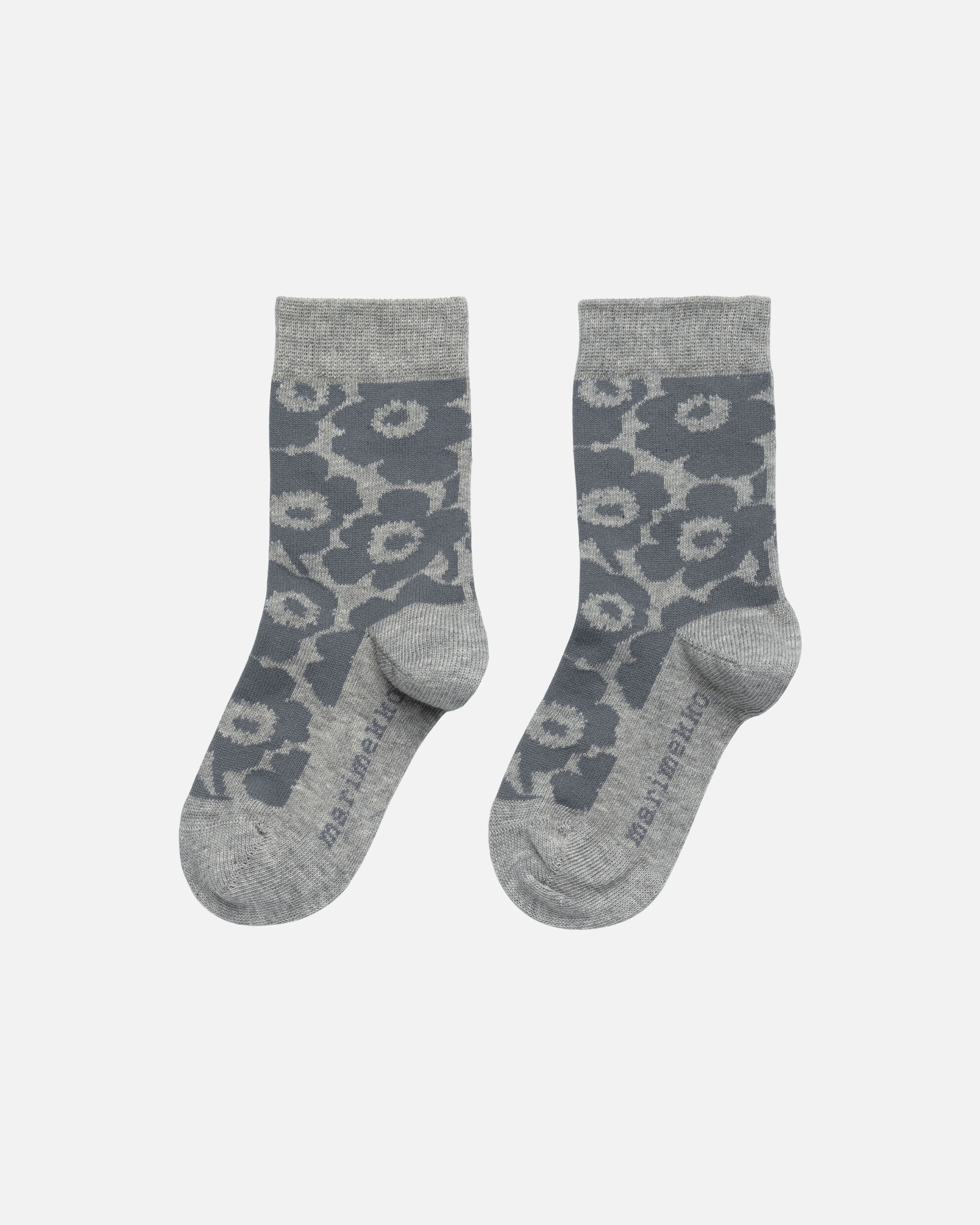 Lasten Makeinen-nilkkasukat on valmistettu puuvillaseoksesta ja niissä on Unikko-kuosi.