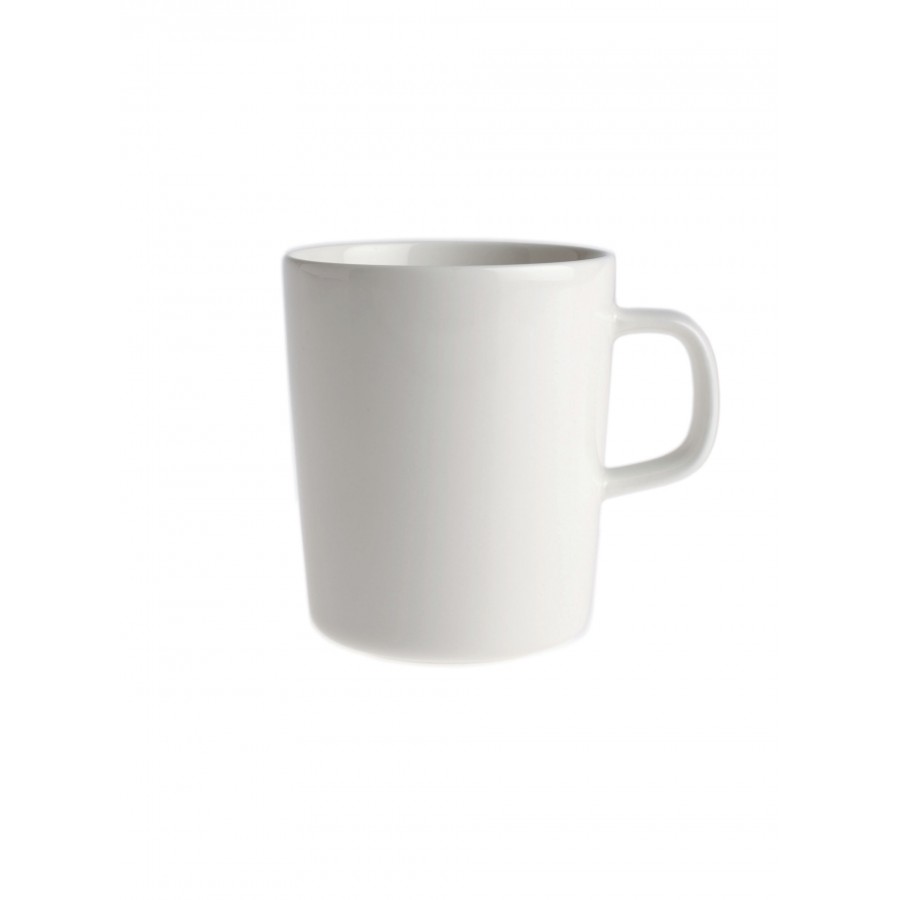 Valkoiset Oiva-mukit toimivat tasapainoittavina elementteinä muuten värikkäässä ja kuviokylläisessä kattauksessa.