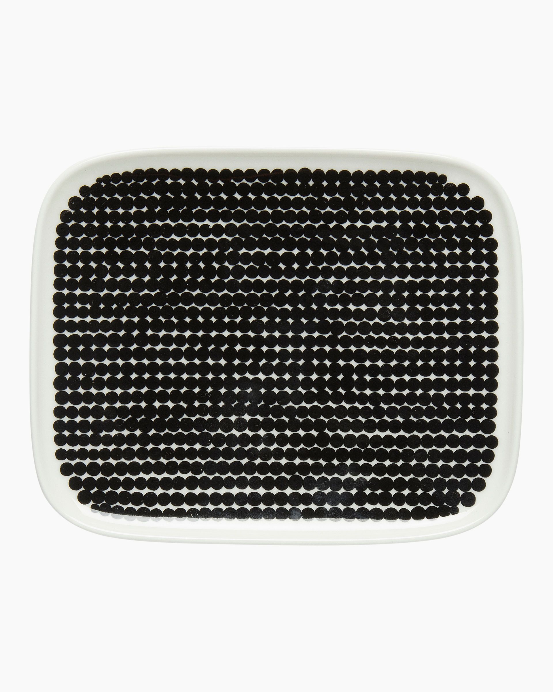 Räsymatto kuosi koristaa tätä pientä kulmikasta Oiva keramiikkalautasta, se on valmistettu valkoisesta kivitavarasta. Se kestää konepesun, mikrouunin ja pakastuksen. Lasitetut värit ja kuvio säilyvät kirkkaina.
