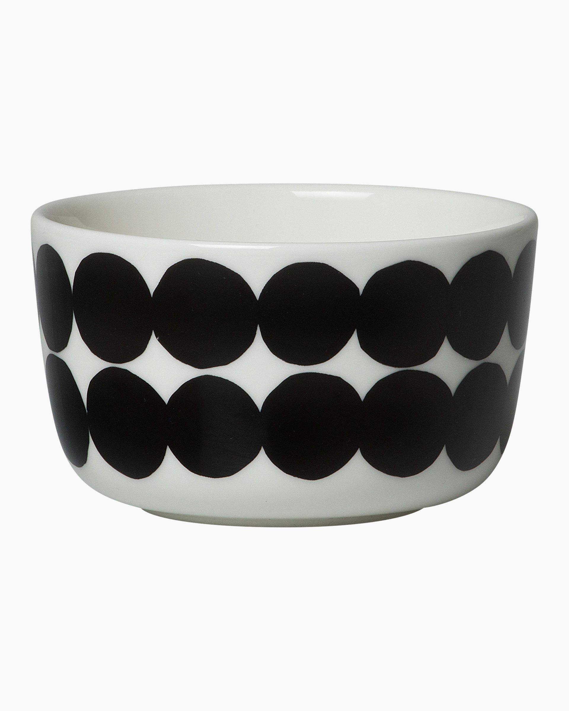 Pienessä posliinikulhossa on mustavalkoinen Räsymatto kuosi. Muki kestää konepesua, mikrouunia ja pakastusta. Lasitetut värit ja kuvio säilyvät kirkkaina.