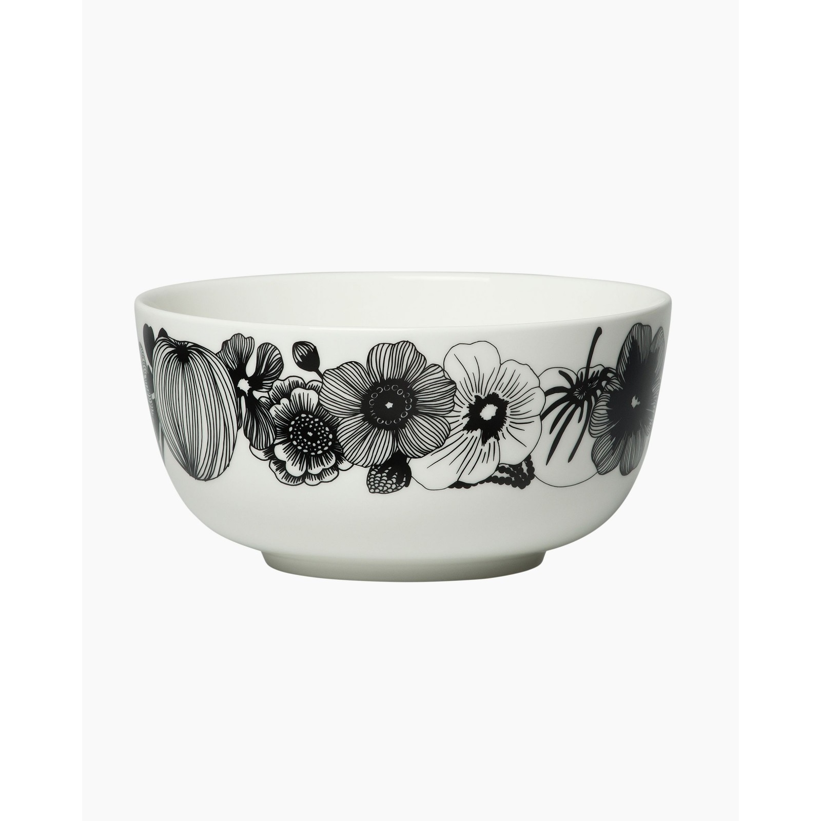 Uusi jalallinen kulhomalli on valmistettu valkoisesta keramiikasta, ja sitä koristaa kaunis mustavalkoinen Siirtolapuutarha-kuosi. Kulho sopii erinomaisesti esimerkiksi salaateille tai nuudeleille. Se on konepesun, uunin, mikroaaltouunin ja pakastuksen kestävä.