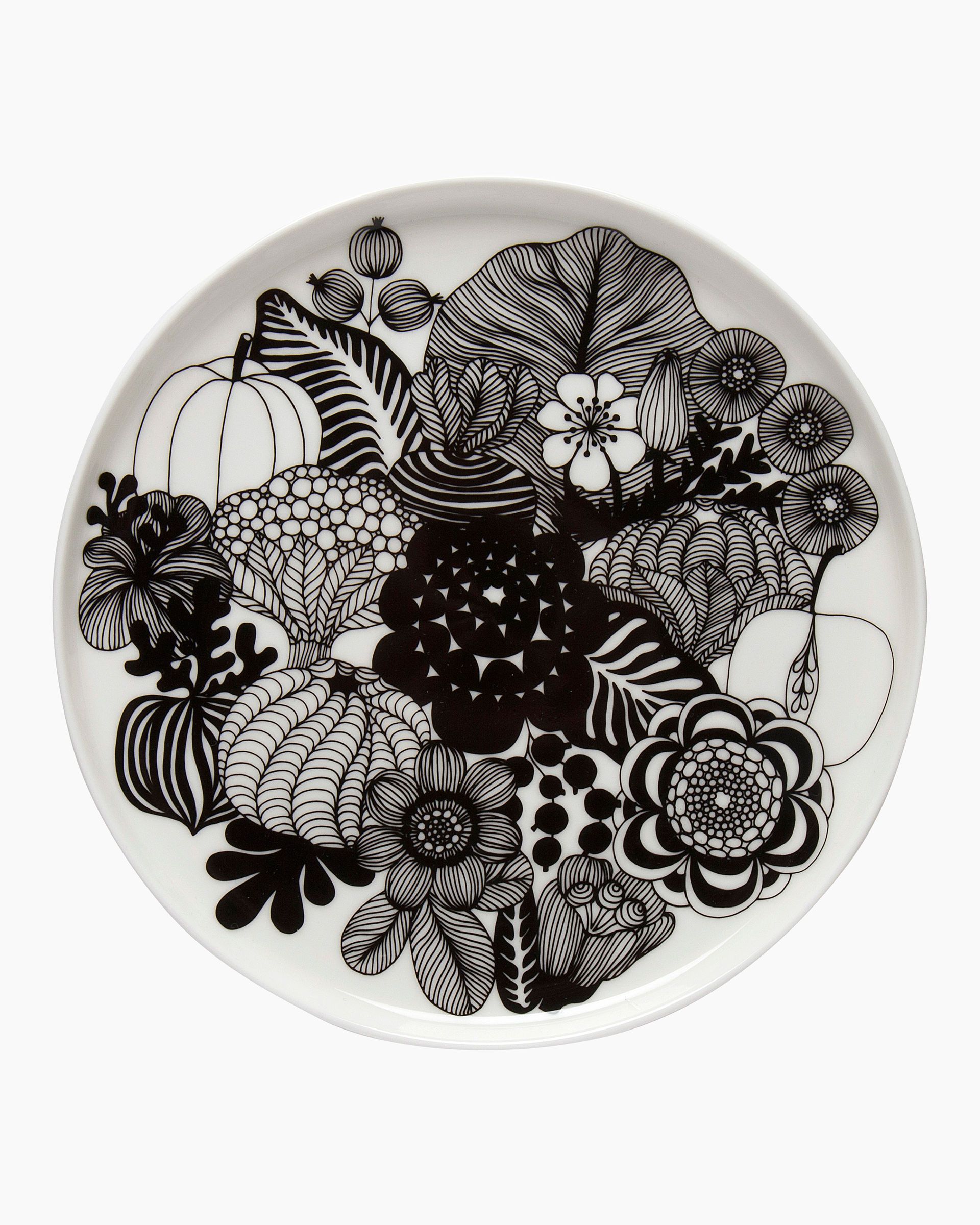 Valkoista keramiikkalautasta koristaa Siirtolapuutarha-kuosin kukka- ja marjakuvio. Lautanen kestää konepesun, mikrouunin ja pakastuksen. Lasitettu väri ja kuvio säilyvät kirkkaina.