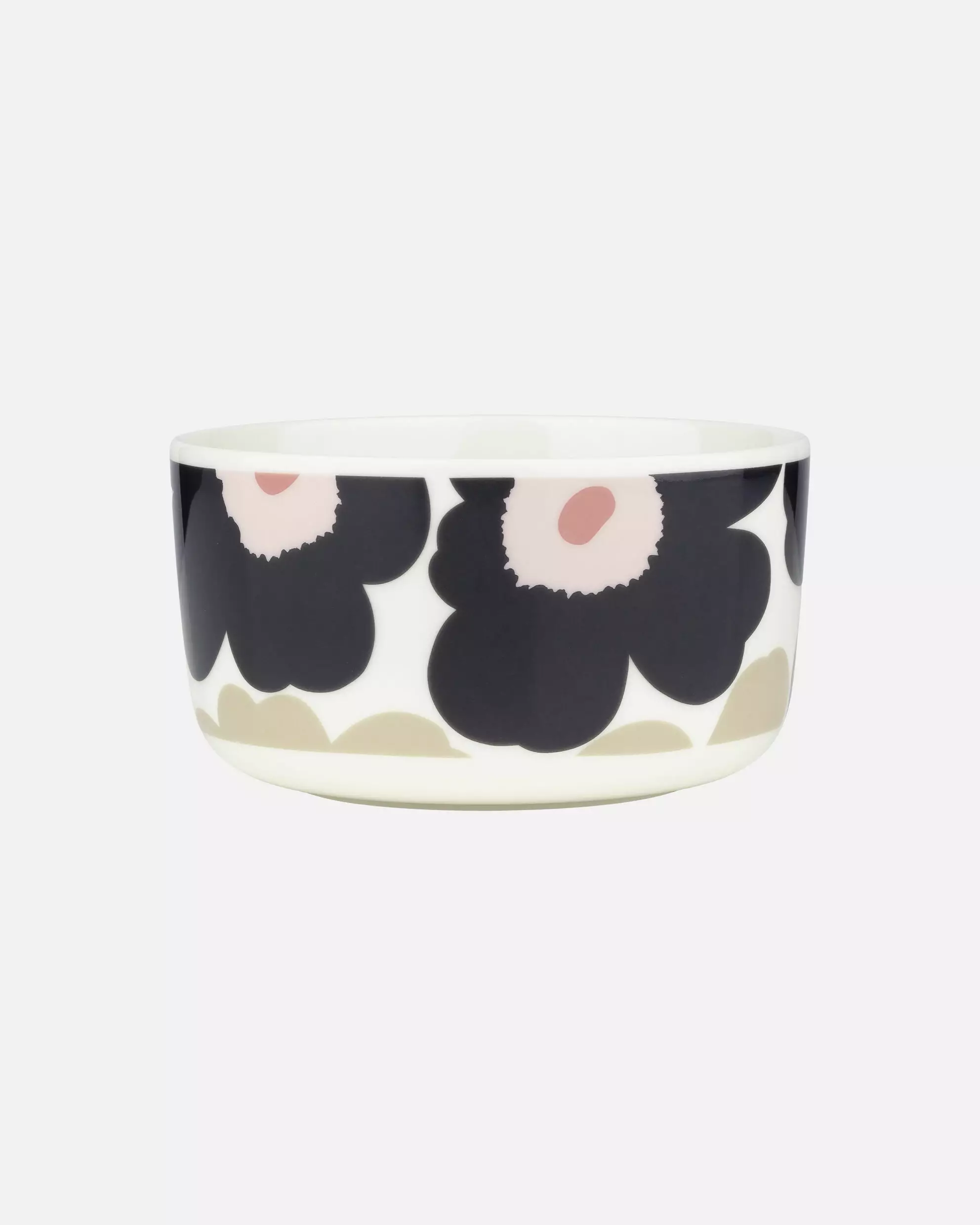 Tuo ajaton design ja ilo kattaukseen tällä upealla Marimekko Oiva Unikko -kulholla. Kulho on valmistettu kestävästä valkoisesta keramiikasta (kivitavaraa) ja siinä on Maija Isolan ikoninen Unikko-kuosi harmonisissa luonnonvalkoisen, hiilen, hiekan ja vaaleanpunaisen sävyissä. Pieni kulho on tilavuudeltaan 5 dl, ja se on suunniteltu Sami Ruotsalaisen toimesta.
