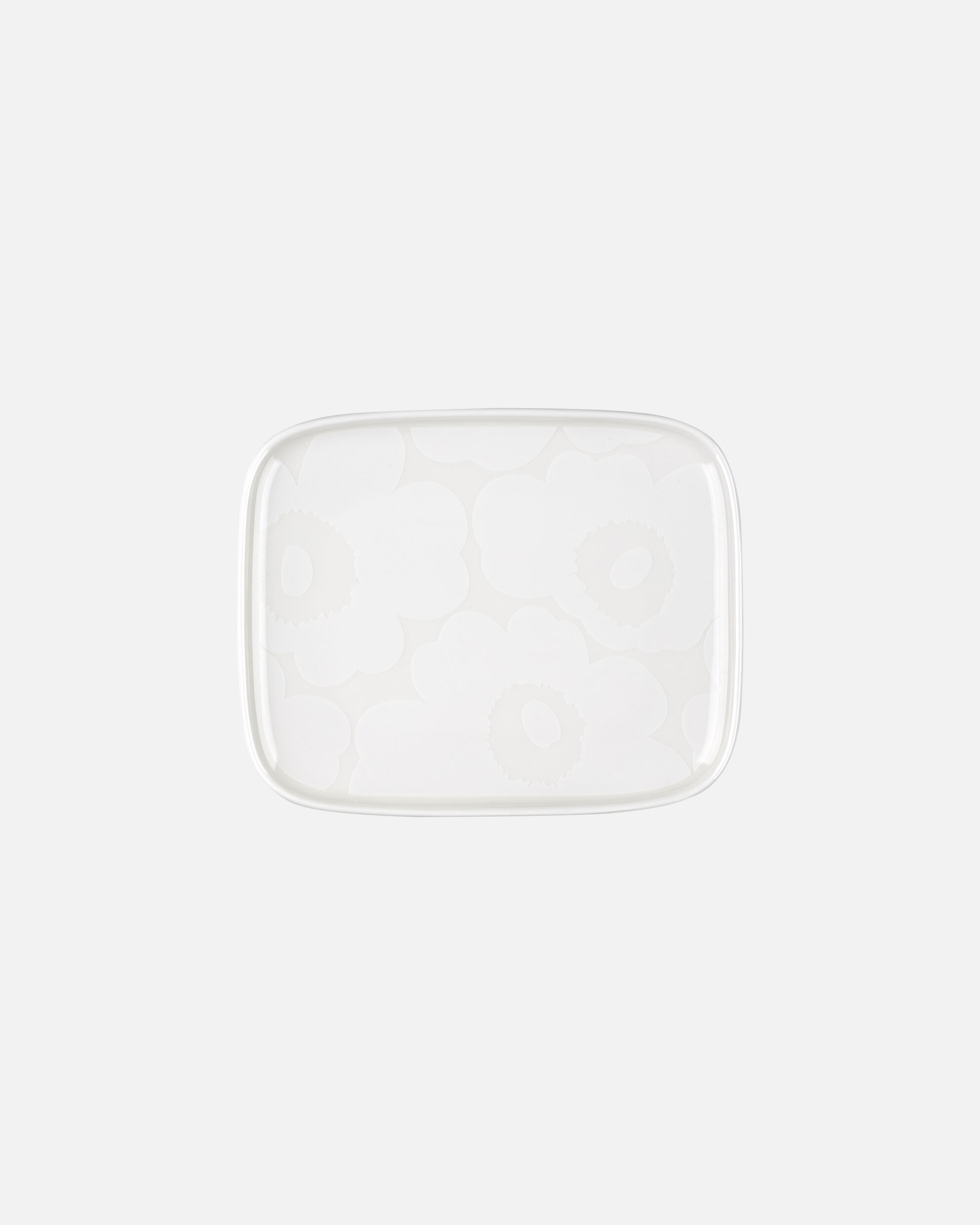 Suorakulmainen Oiva-lautanen on valmistettu konepesun, uunin, mikroaaltouunin ja pakastuksen kestävästä valkoisesta keramiikasta.