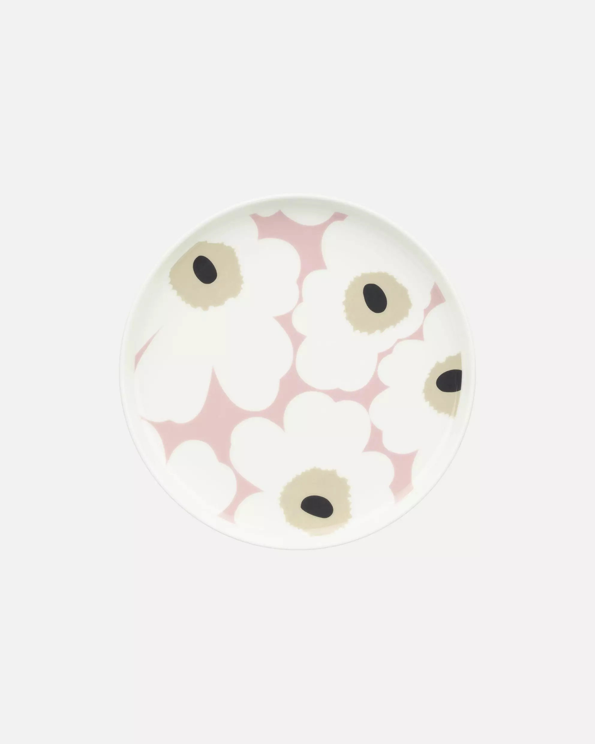 Tuote: Marimekko Oiva Unikko Lautanen 20 cm Avainsanat: Marimekko Oiva lautanen, Unikko lautanen 20 cm, Sami Ruotsalainen, keramiikkalautanen, uuninkestävä, luonnonvalkoinen vaaleanpunainen.
