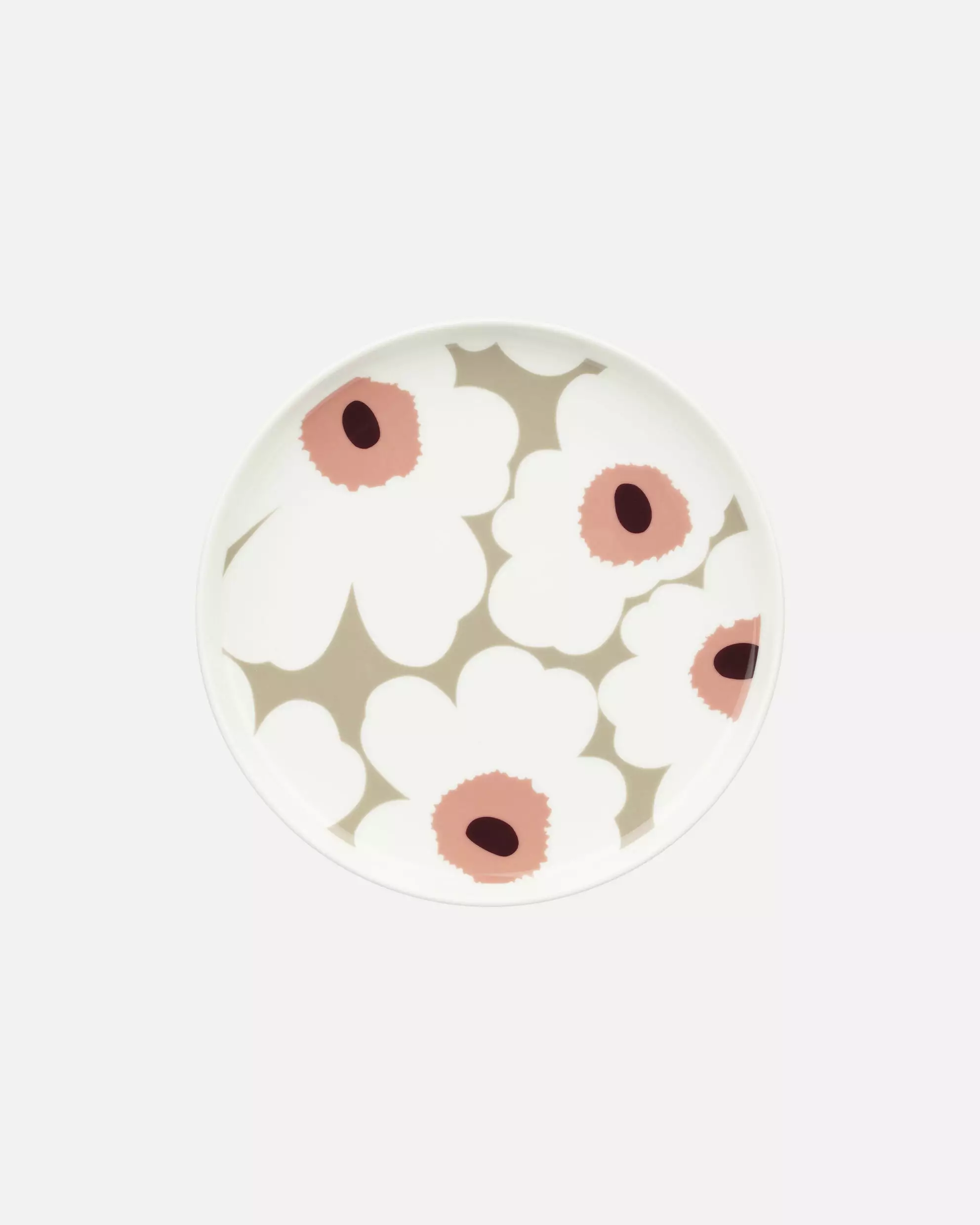 Marimekko Oiva Unikko Lautanen 20 cm – Valkoinen, Savi, Puuteri, Viini