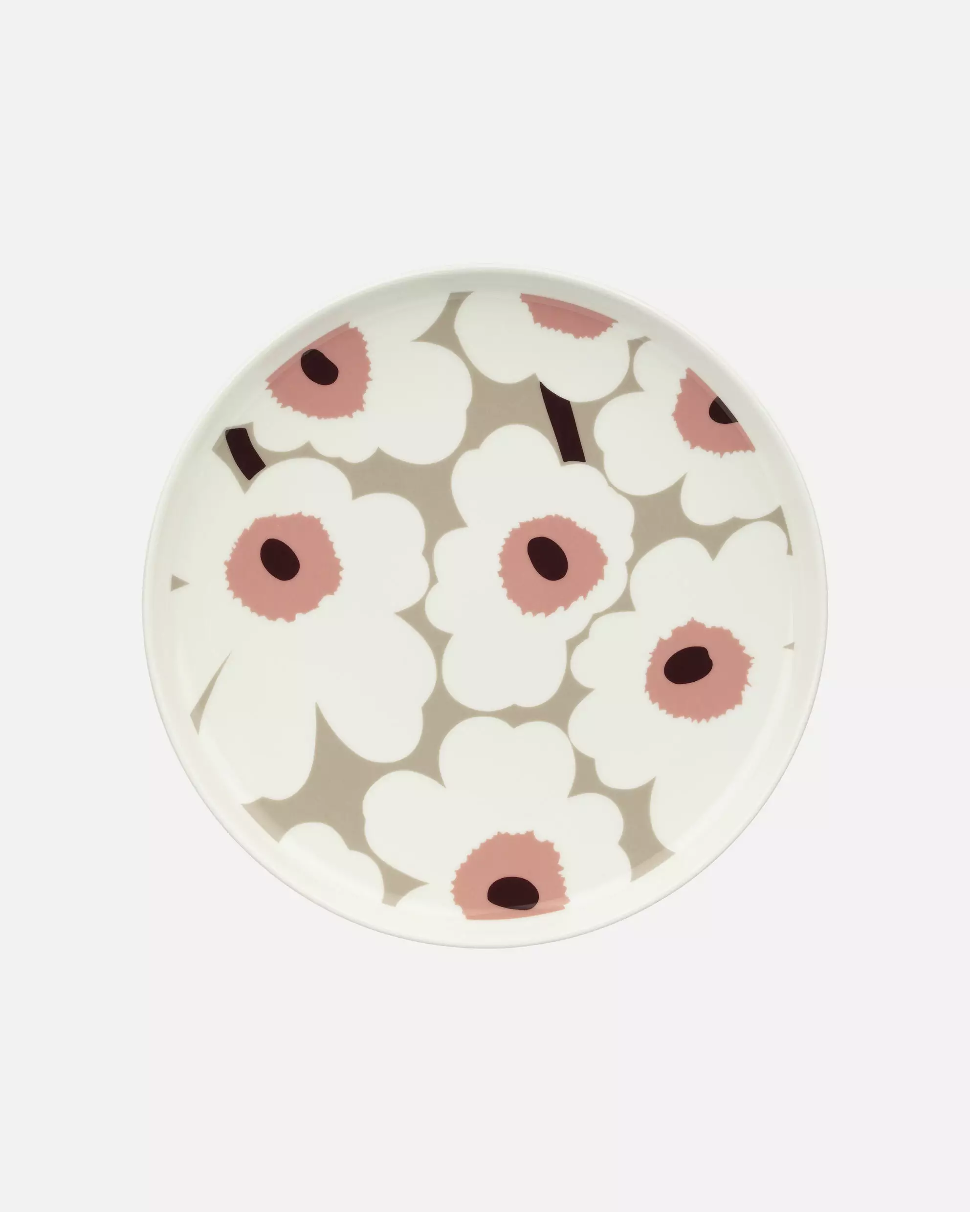 Marimekko Oiva Unikko Lautanen 25 cm – Päälautanen, Valkoinen, Savi, Puuteri, Viini
