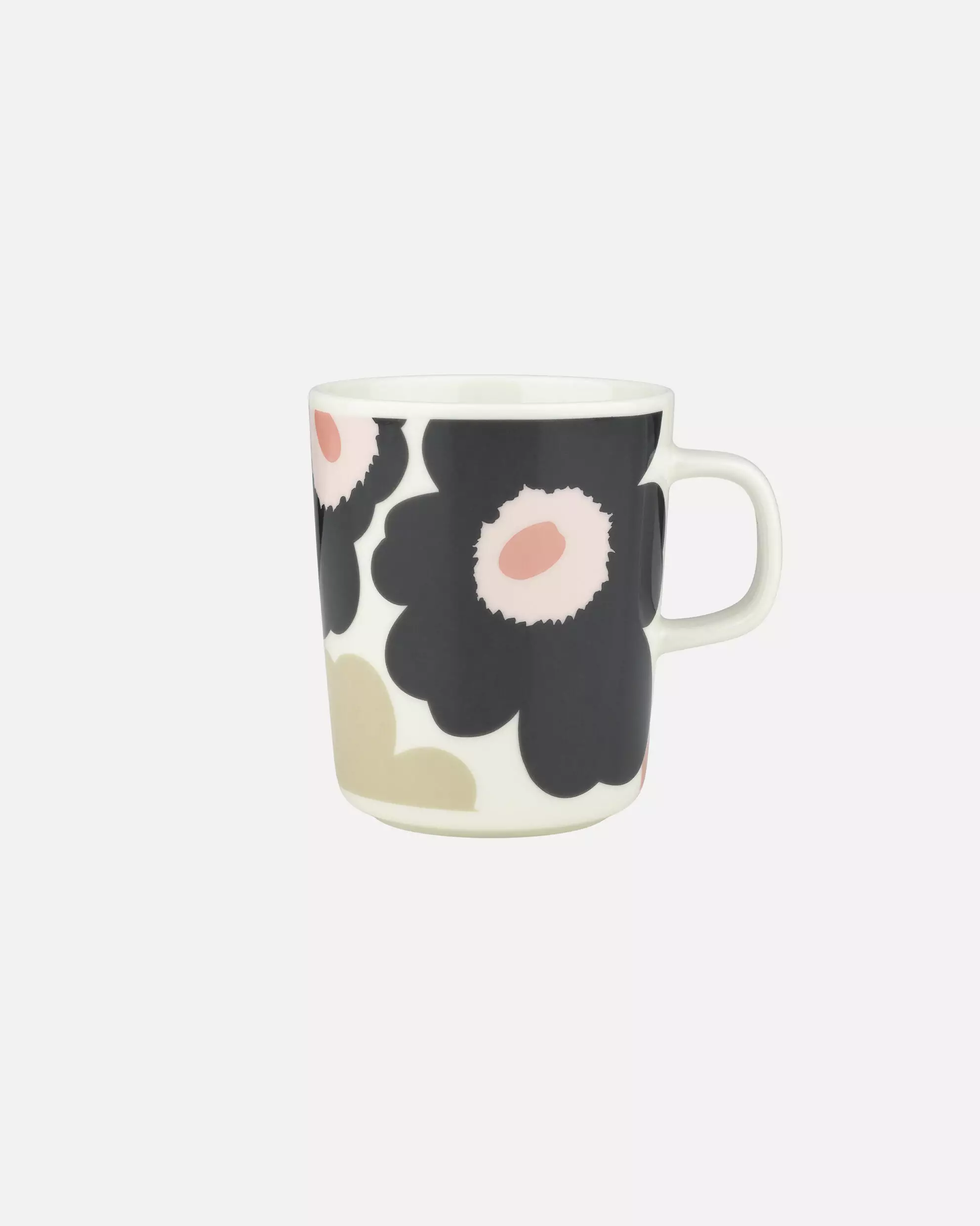 Tuote: Marimekko Oiva Unikko Muki 2,5 dl Avainsanat: Marimekko Oiva muki, Unikko muki 2,5 dl, Sami Ruotsalainen, keramiikkamuki, uuninkestävä, luonnonvalkoinen hiili hiekka vaaleanpunainen.