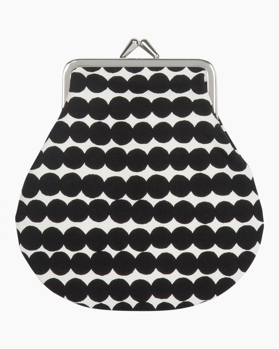 Marimekon suositussa pienessä kukkarossa voi kätevästi säilyttää esimerkiksi kolikoita, maksukortteja, meikkejä ja paljon muuta. Kätevä säilytin myös isompaan kassiin, niin löydät tavarasi kassista helpommin. Kukkaro on valmistettu puuvillasta ja siinä on klassinen mustavalkoinen Räsymatto kuosi. Käytännöllinen metalli kehys on helppo ja nopea napsauttaa auki ja kiinni.