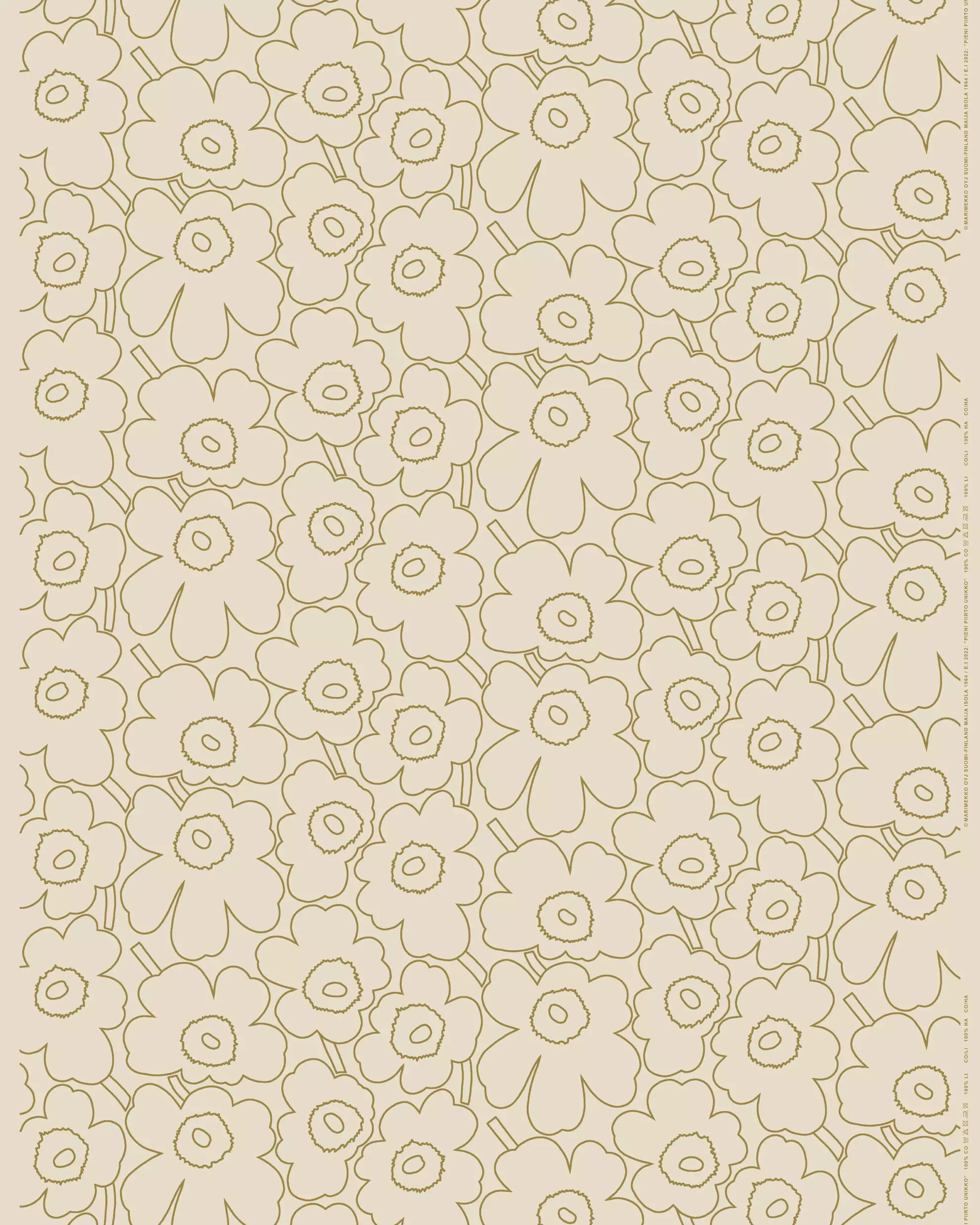 Marimekko Pieni Piirto Unikko Puuvillapellavakanga, pellava, kulta